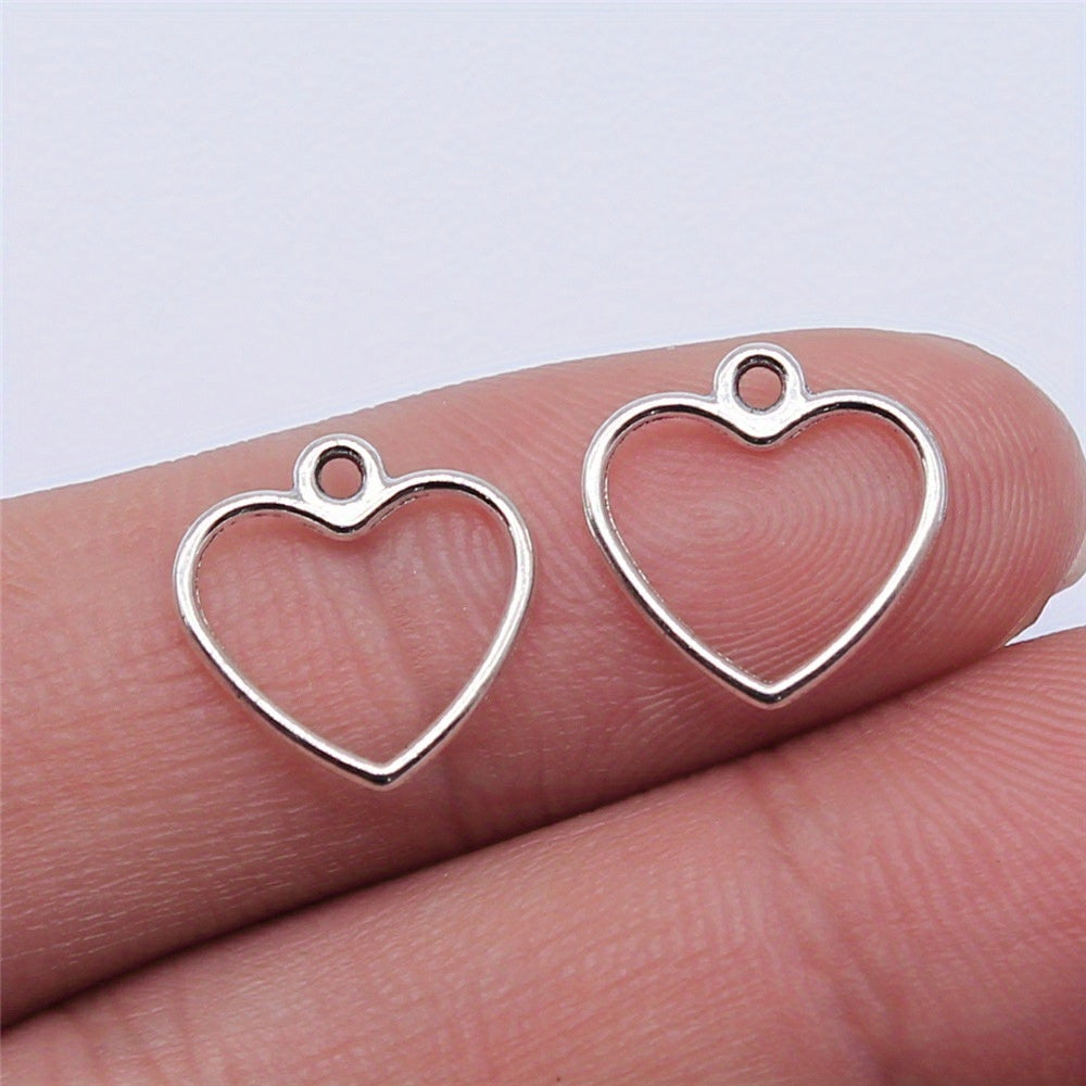 20pcs Silver Plated Hollow Heart Pendant Jewelry Making