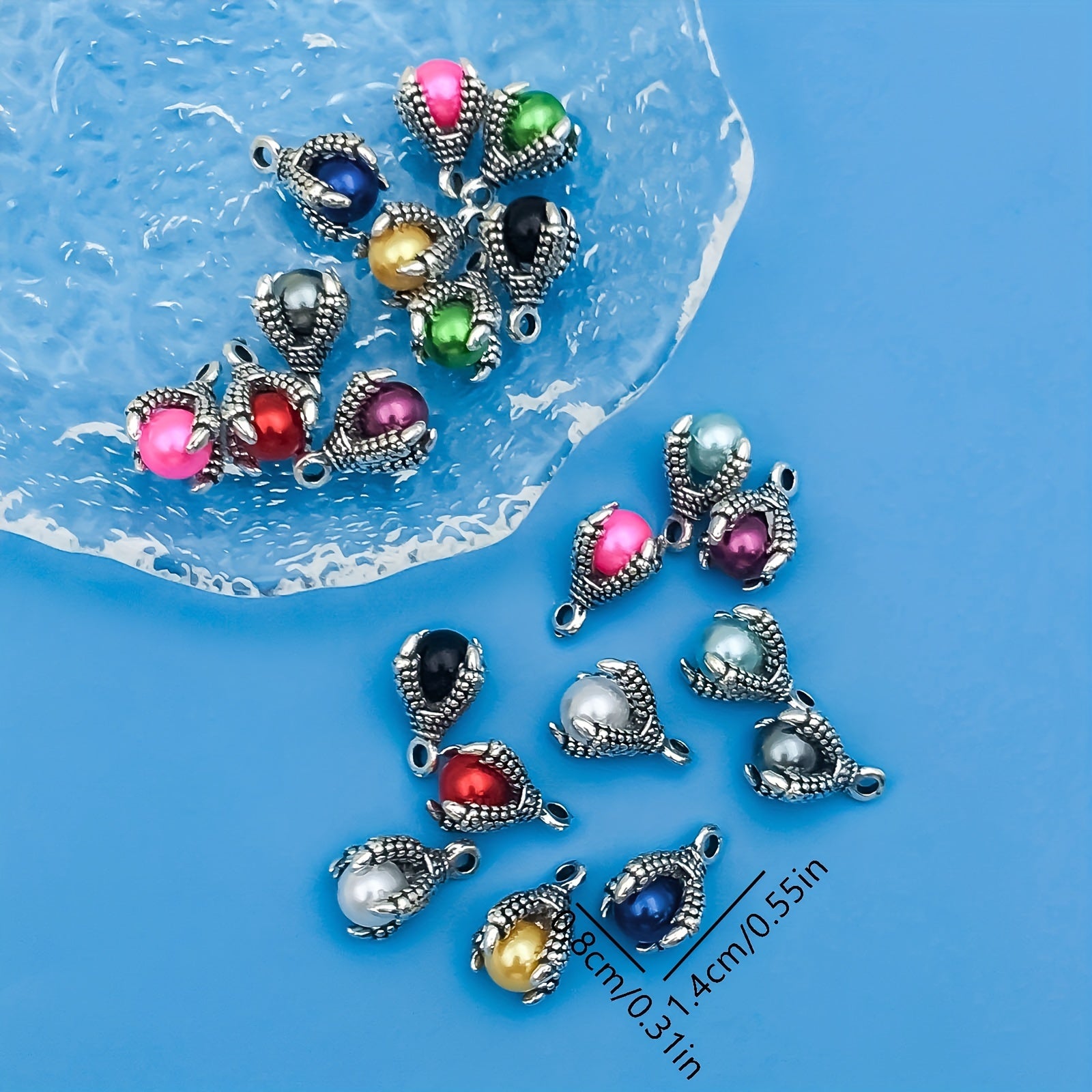 Elevate your bracelet creations with these 20pcs alloy pendants featuring silvery dragon claw and faux pearl design. Perfect for adding a unique touch to your jewelry pieces.