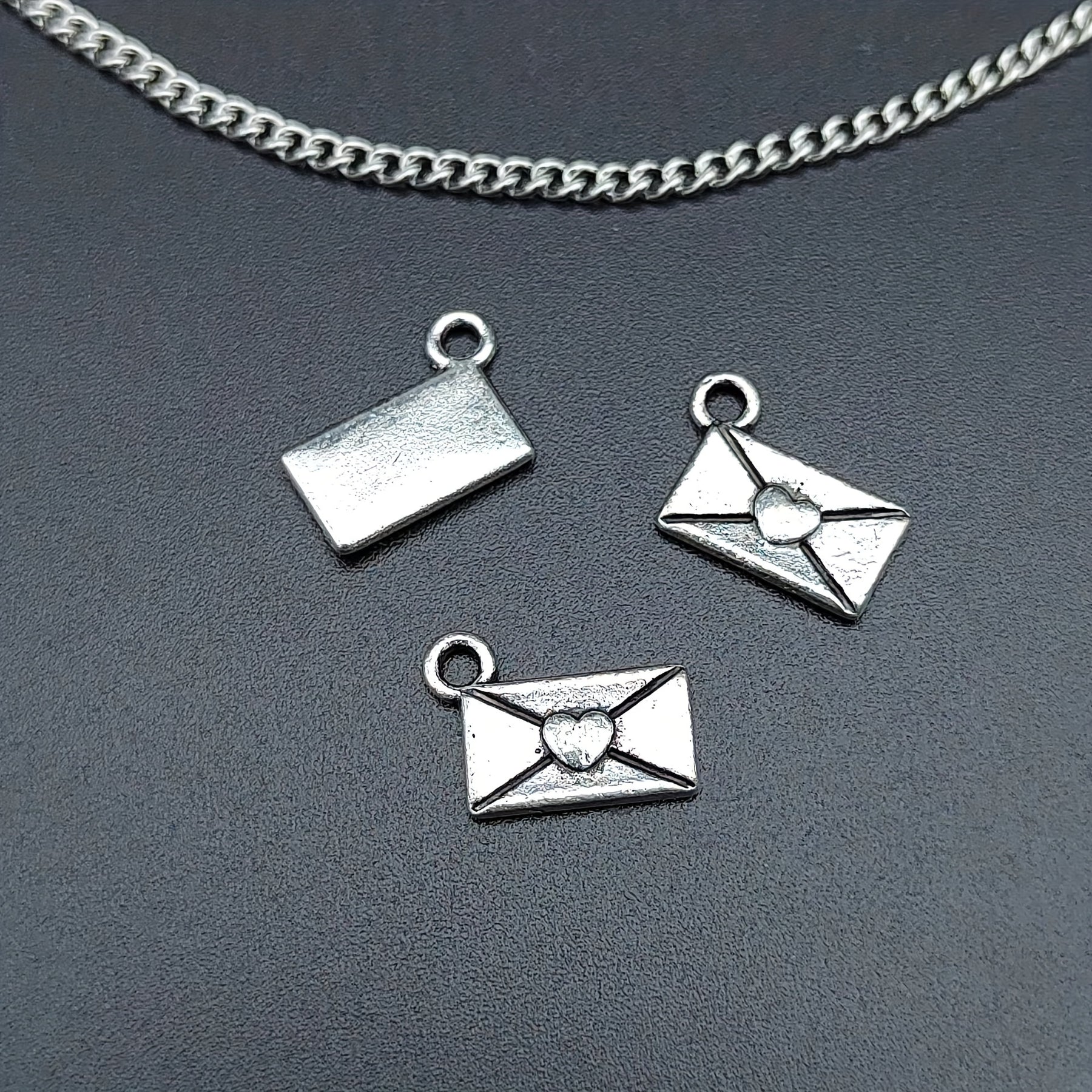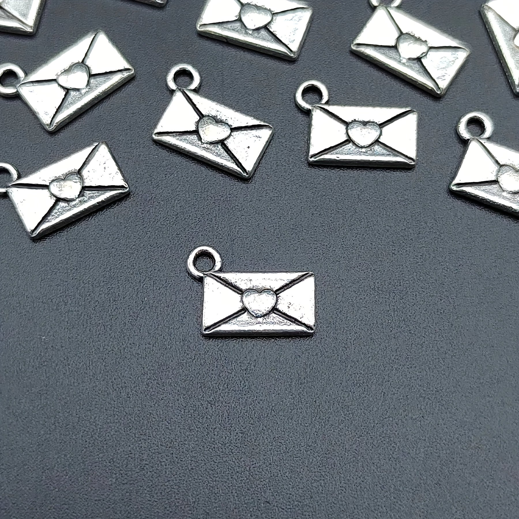 Add a touch of vintage charm to your creations with these 20 silvery love envelope pendants. Perfect for earrings, bracelets, necklaces, and other accessories.