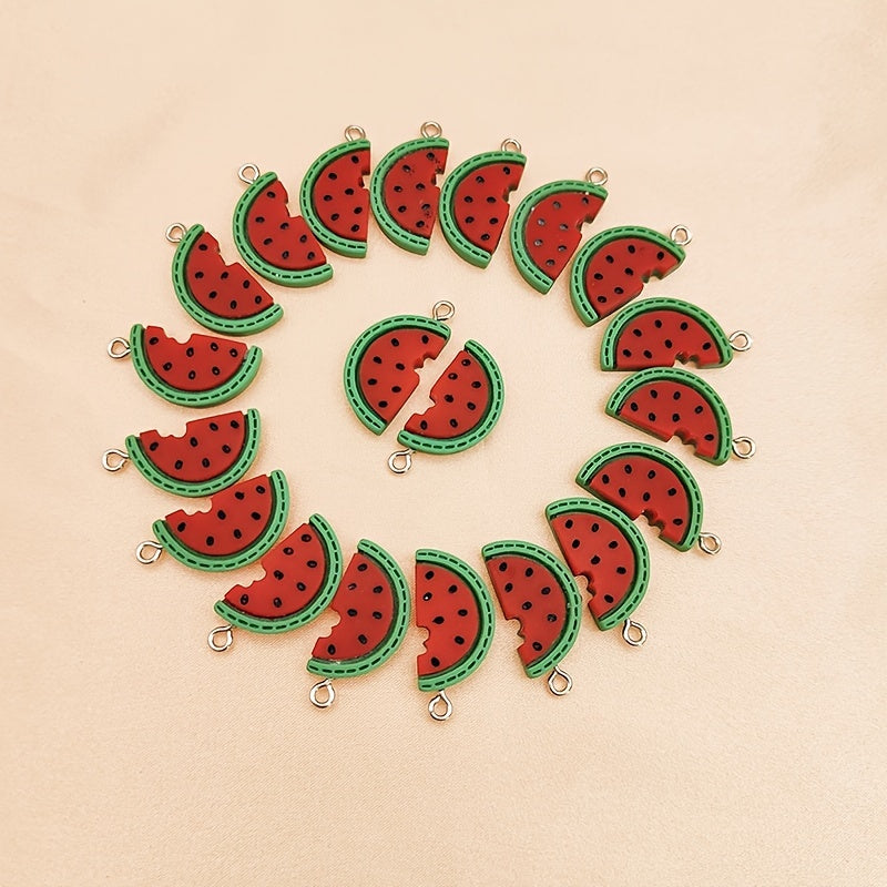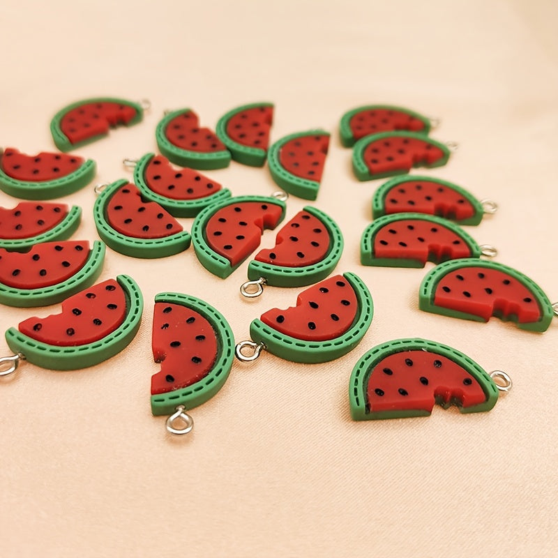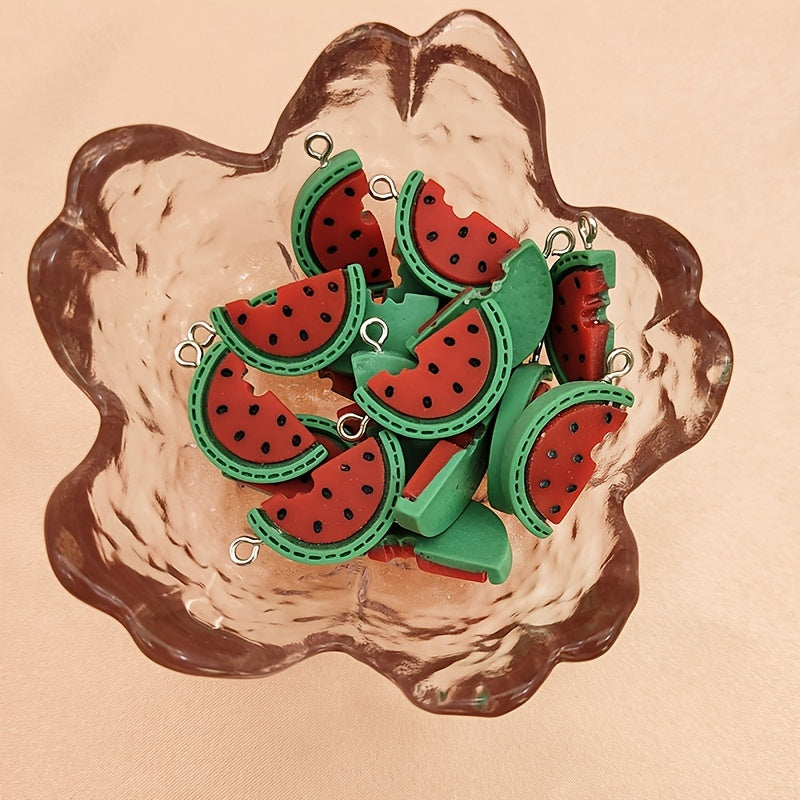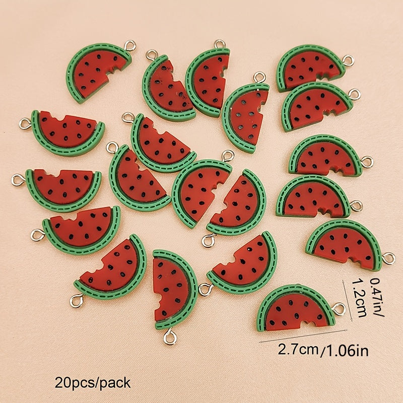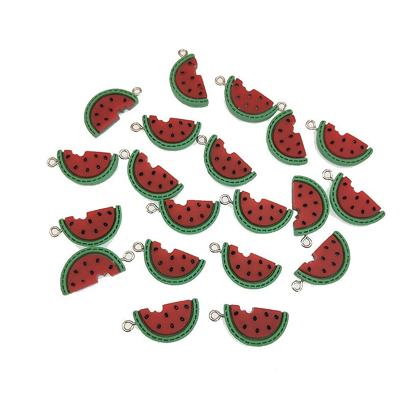 Get a pack of 20 watermelon pendants for DIY jewelry making. These simulated fruit pendants are perfect for creating earrings, necklaces, and bracelets.