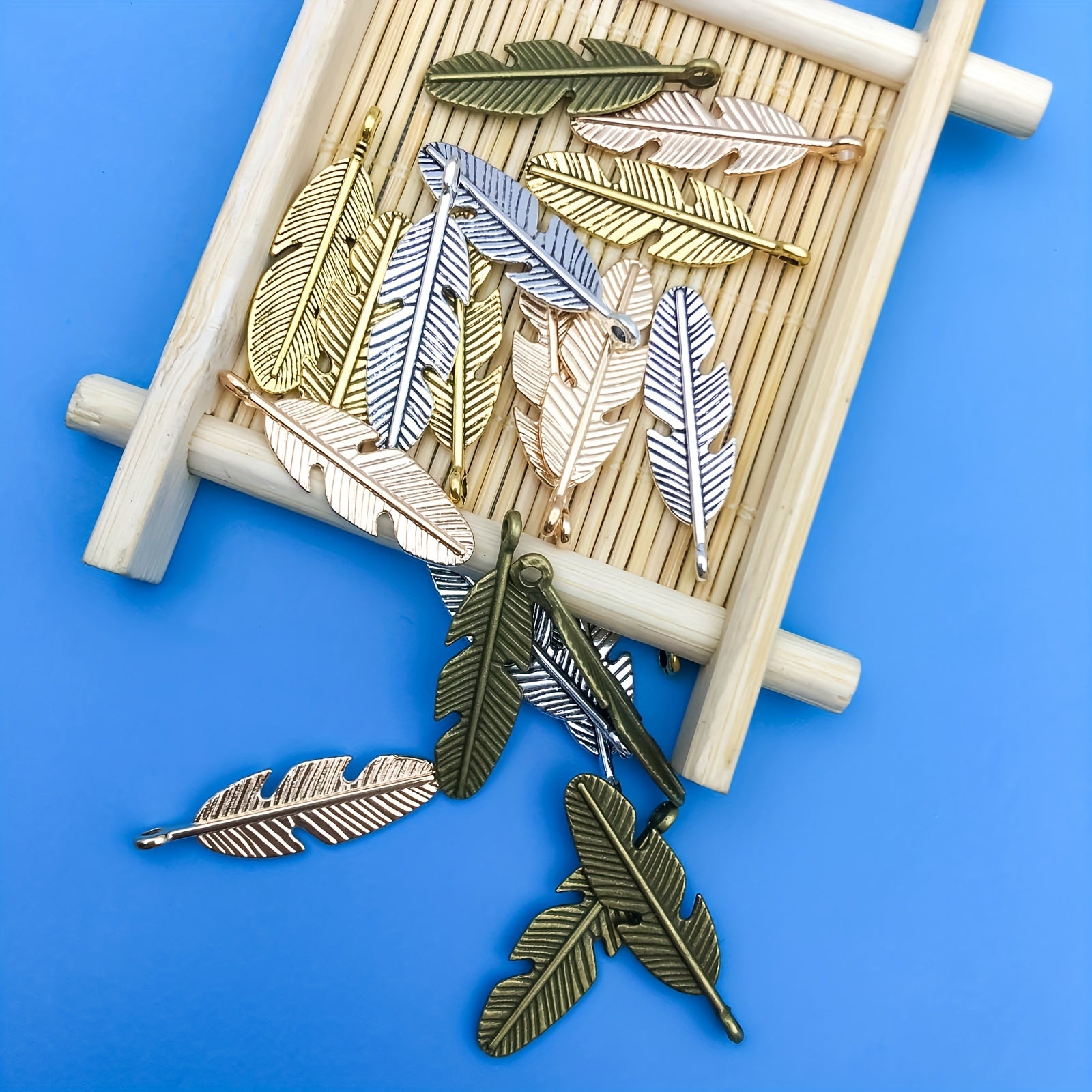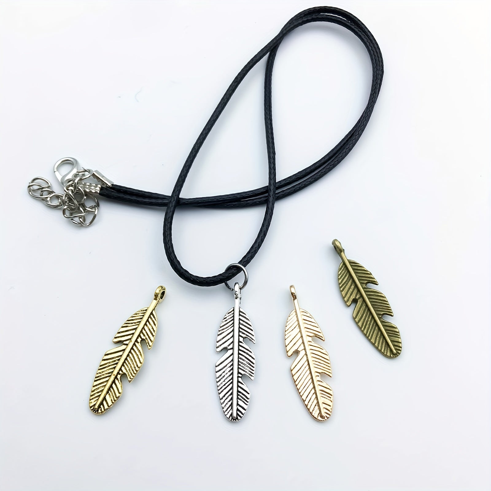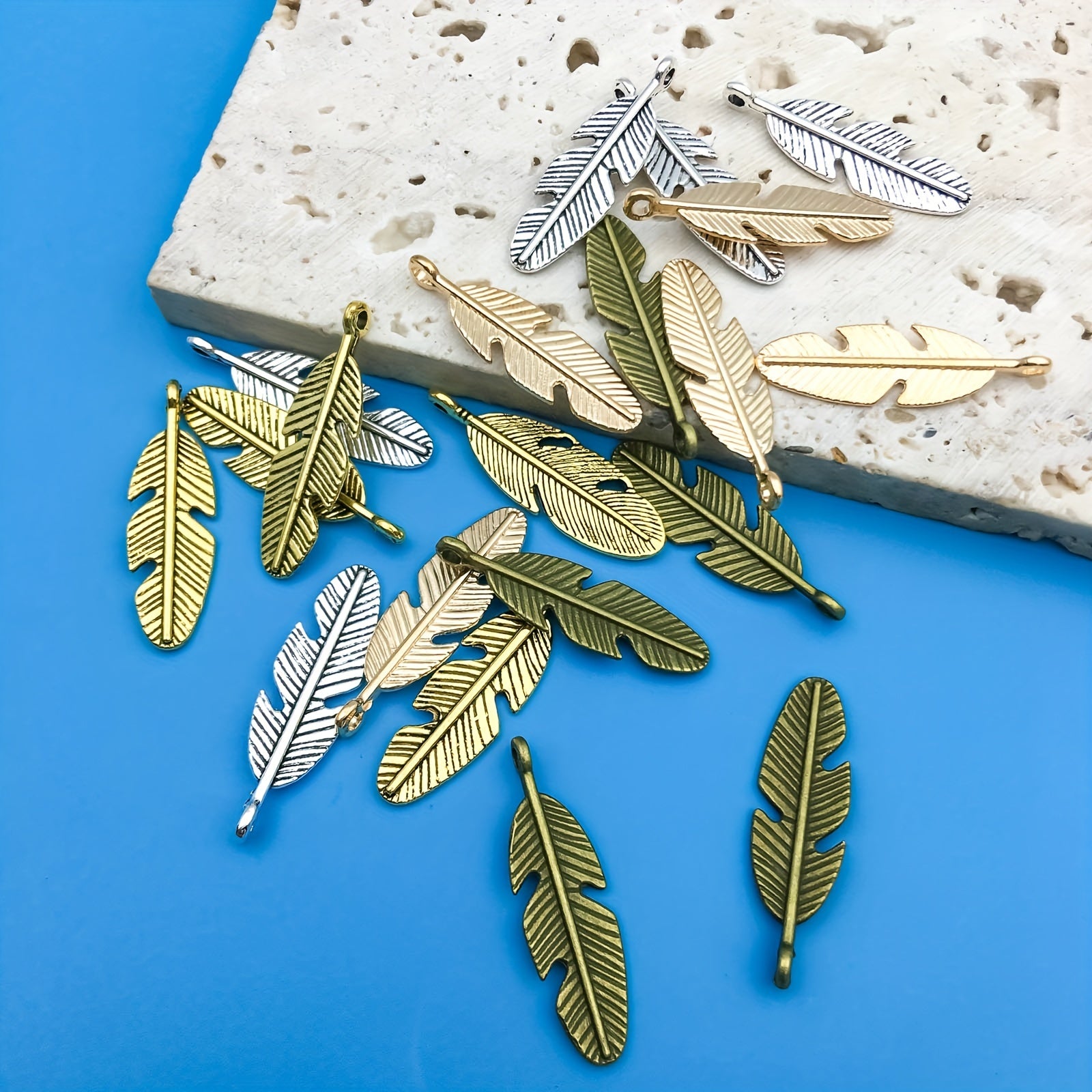 Get this pack of 20 zinc alloy feather shape charms pendants to create your own DIY bracelet or necklace. These semi-finished jewelry accessories are perfect for crafting unique pieces.