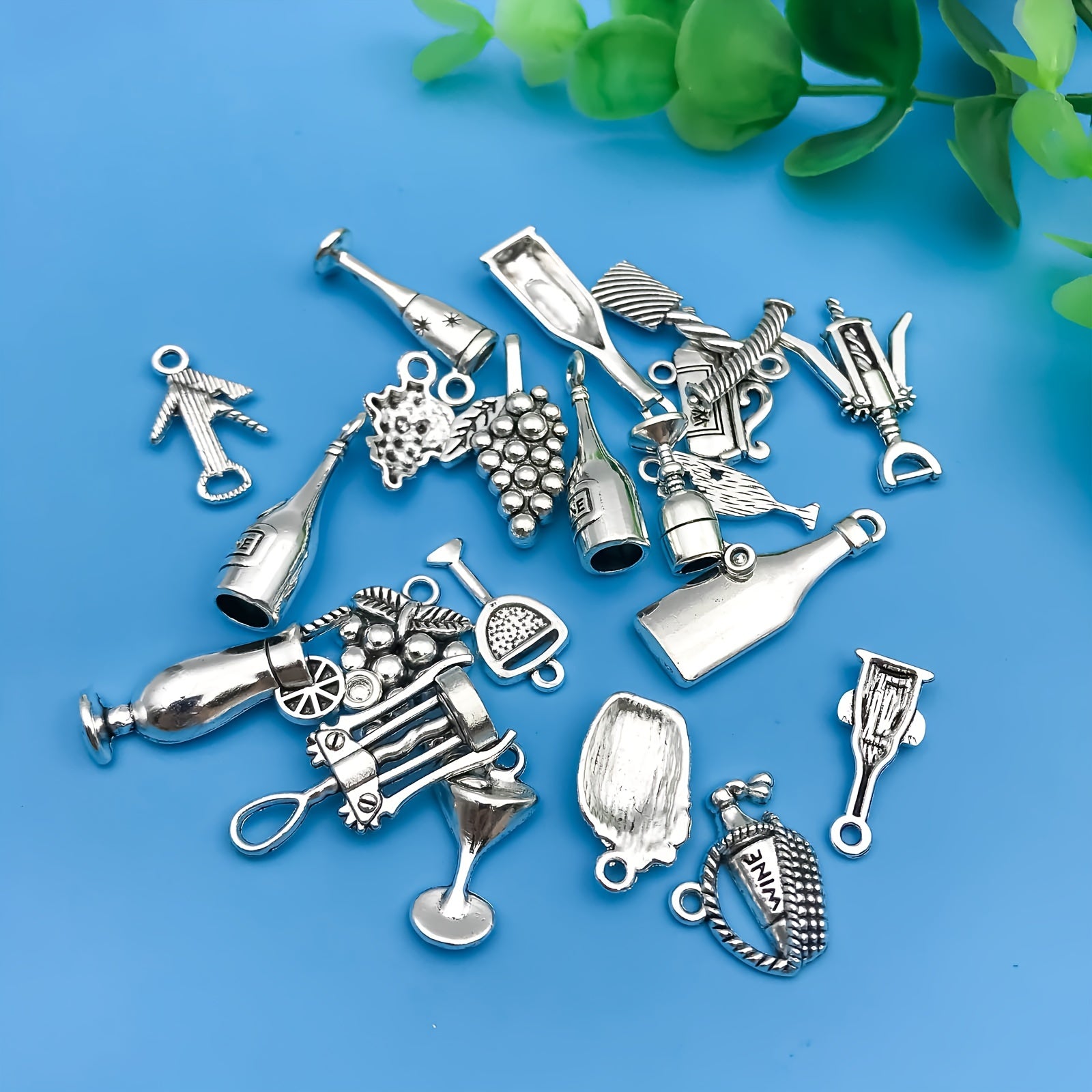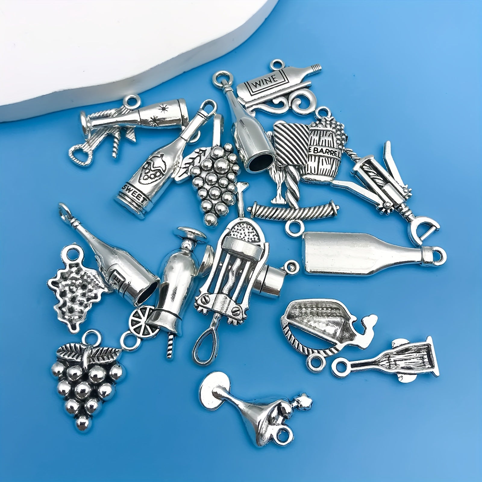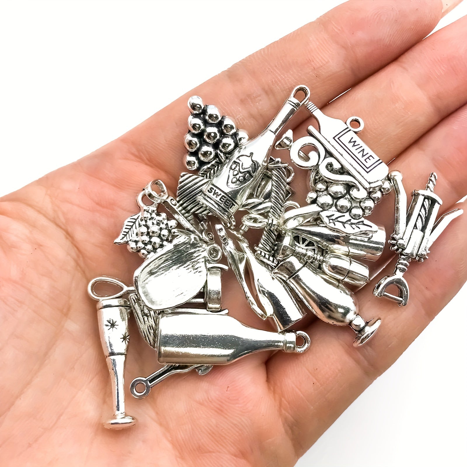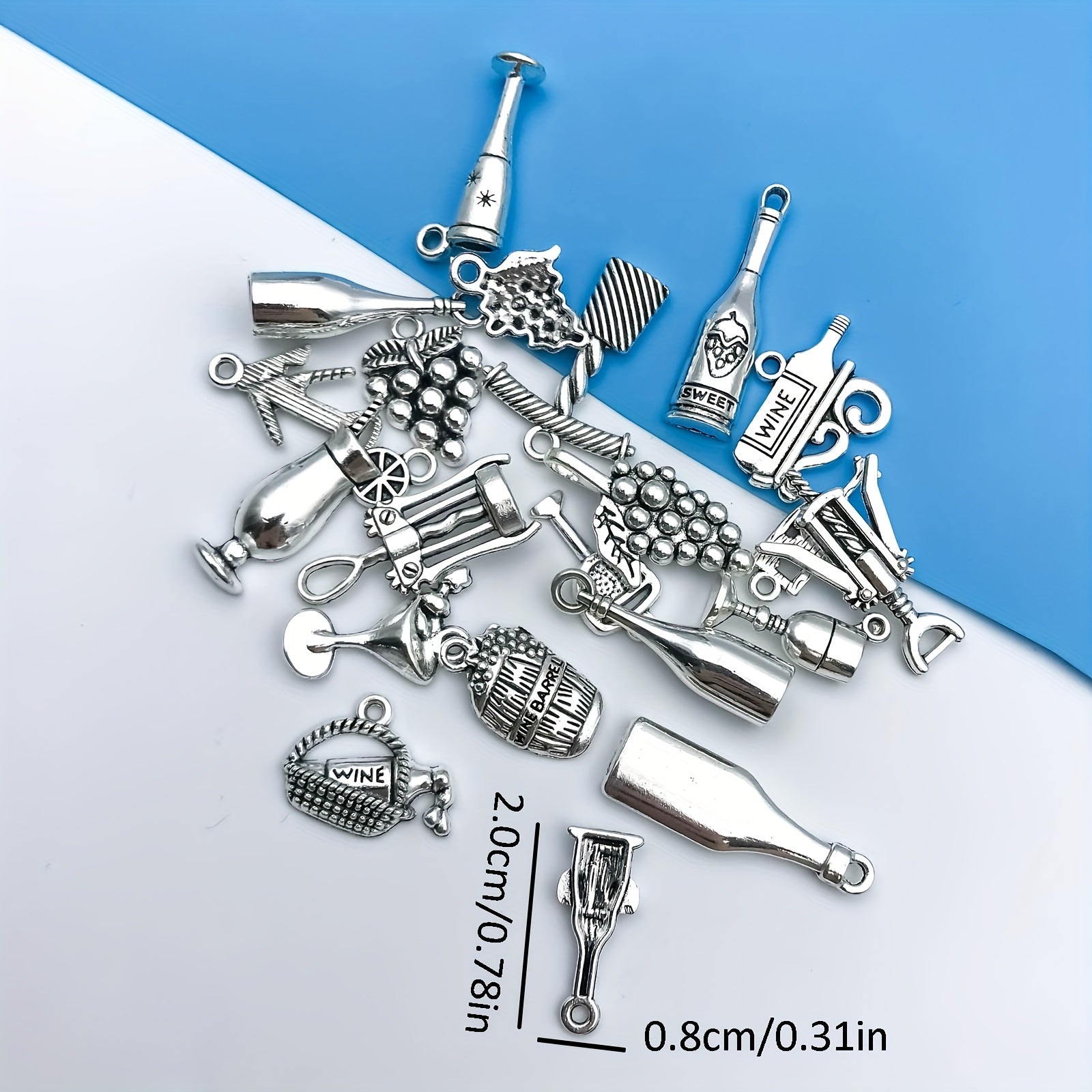 Get this set of 20 zinc alloy charms shaped like red wine bottles for creating unique jewelry pieces. Perfect for necklaces, bracelets, and earrings.
