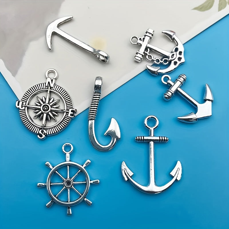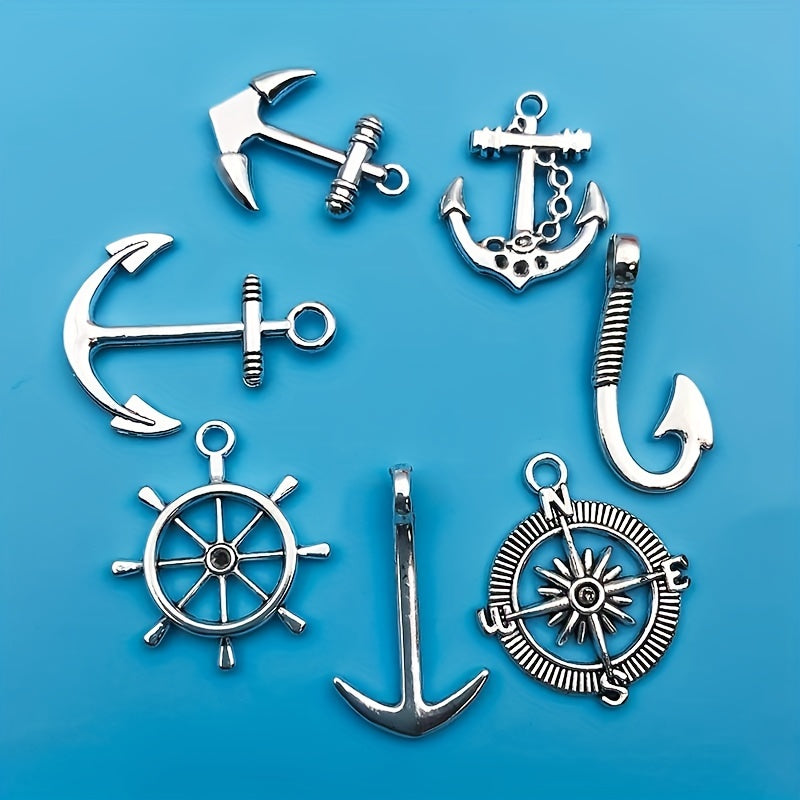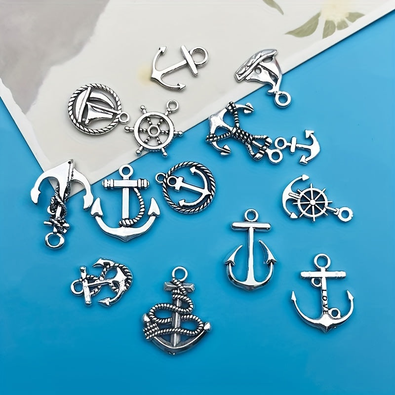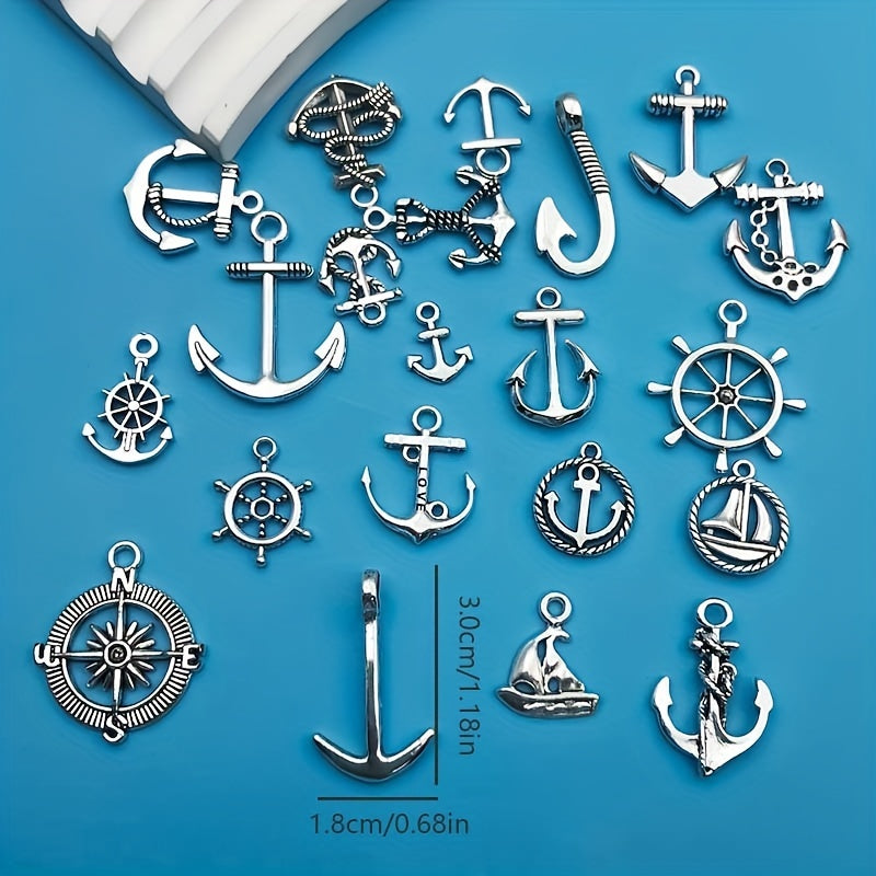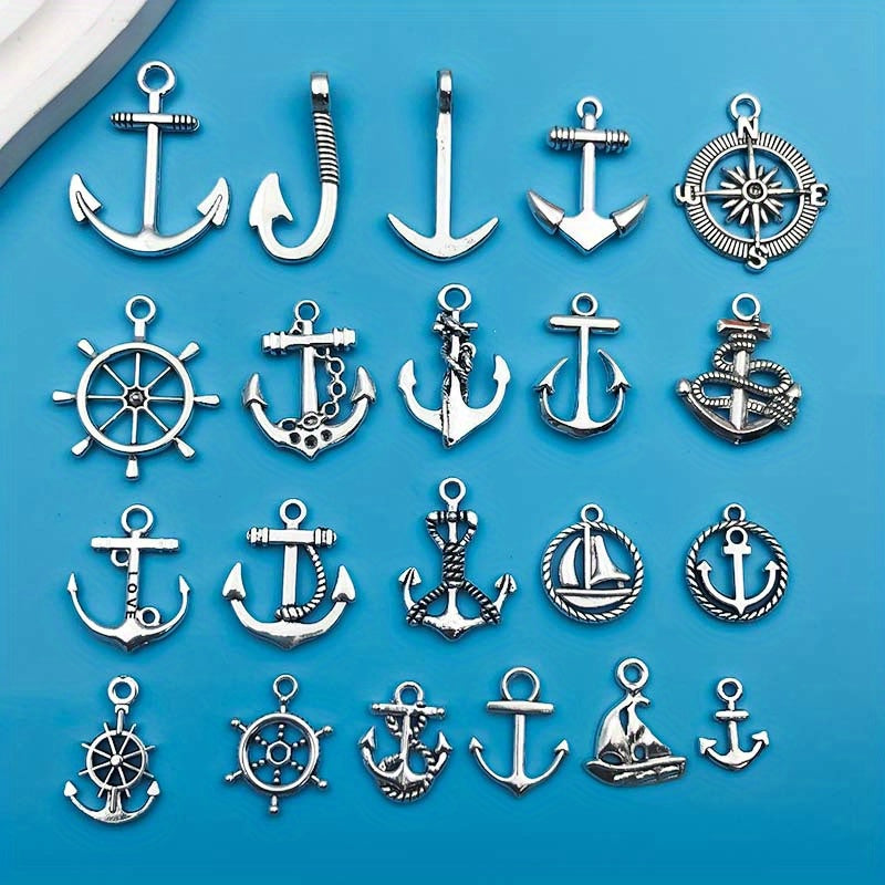 Create unique necklaces, bracelets, and earrings with this set of 21 zinc alloy antique silver sea anchor pendants. Perfect for handcrafted jewelry projects.