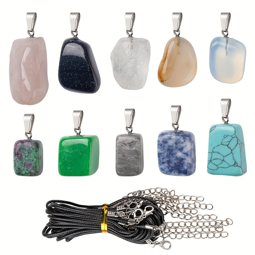 Create beautiful necklaces with this DIY kit that includes 22 mixed stone pendants and waxed cords. Perfect for crafting unique jewelry pieces.