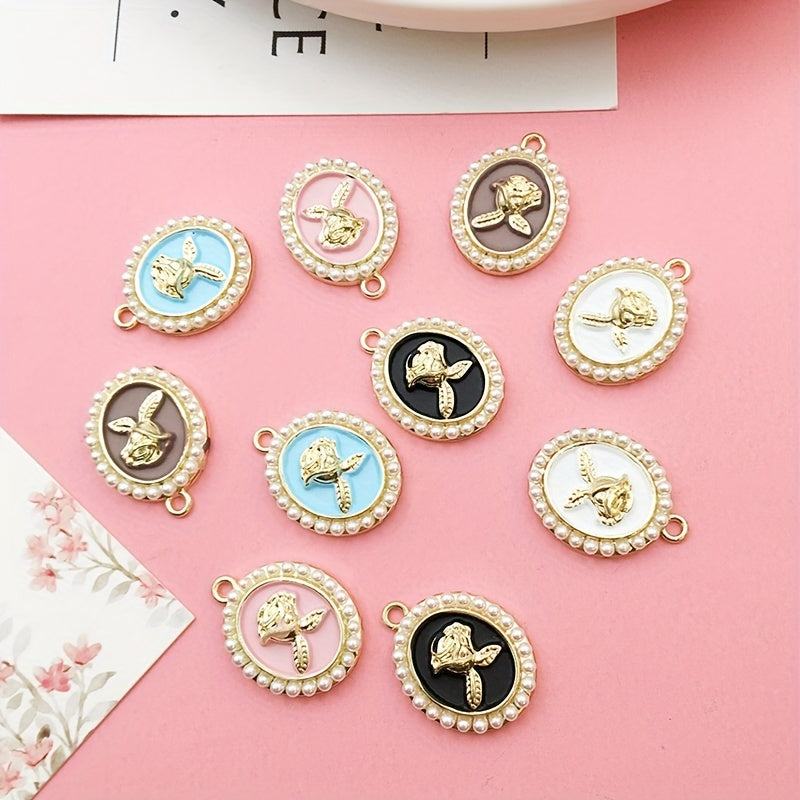 Elevate your jewelry making projects with these cute rabbit pattern charms. Ideal for bracelets, earrings, necklaces, and more. Made of durable zinc alloy with enamel finish. Each charm is 16X21mm in size and features a lovely pearl detail.