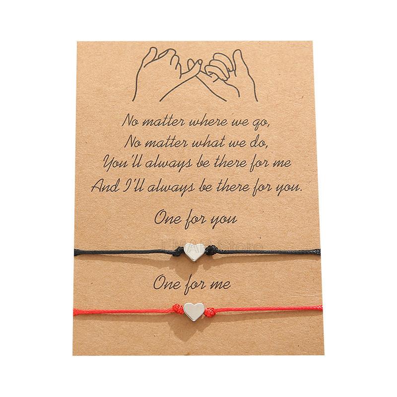2Pcs Set Heart Charm Bracelets Red String Wish Card Couple Jewelry Gift