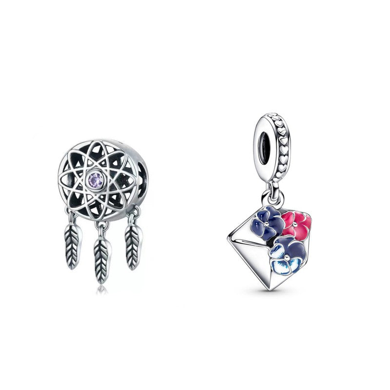 Add a touch of elegance to your creations with these silvery alloy pendant beads featuring rhinestone decor and dream catcher net design. The enamel flower decoration adds a charming detail to these dangle pendants.