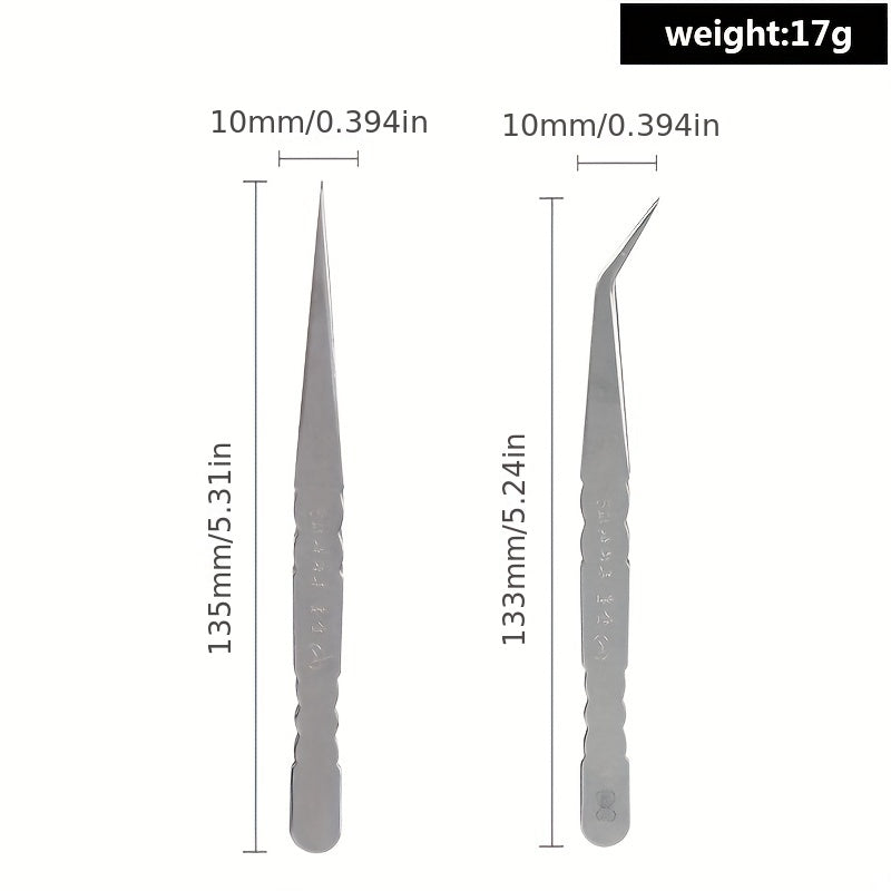 Get this set of 2 stainless steel precision tweezers for your DIY jewelry making projects. The tweezers feature straight head and elbow designs.
