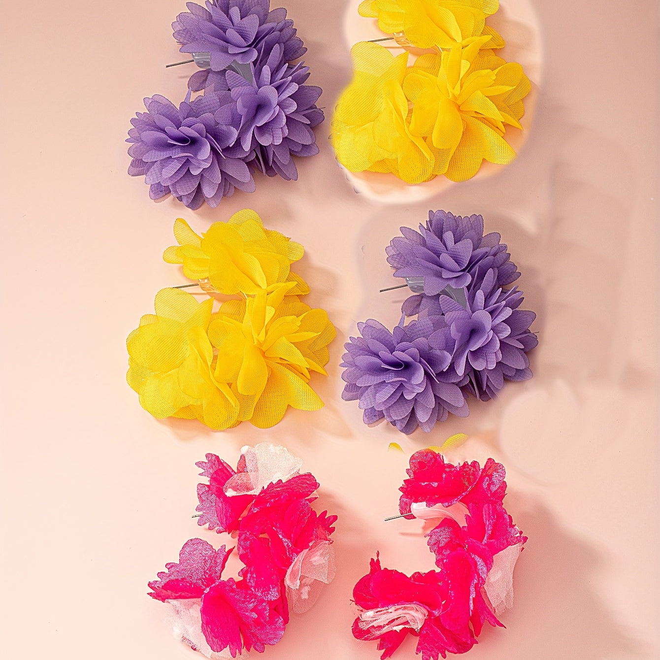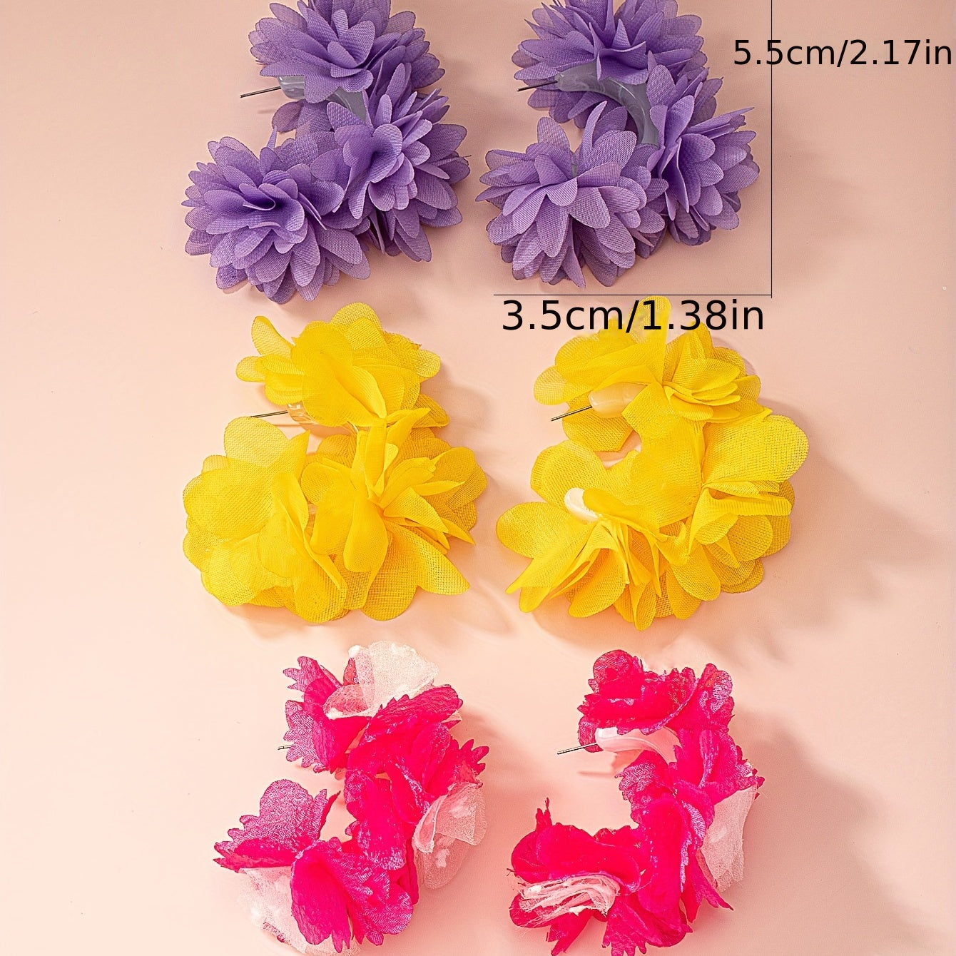 3 Pairs Bohemian Flower Petal Hoop Earrings Set