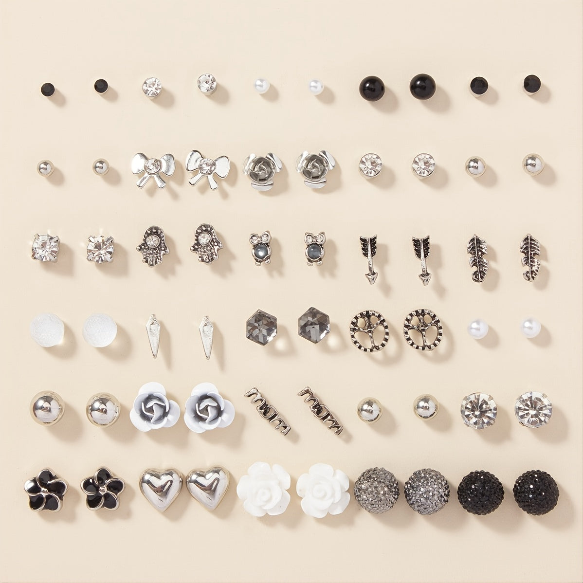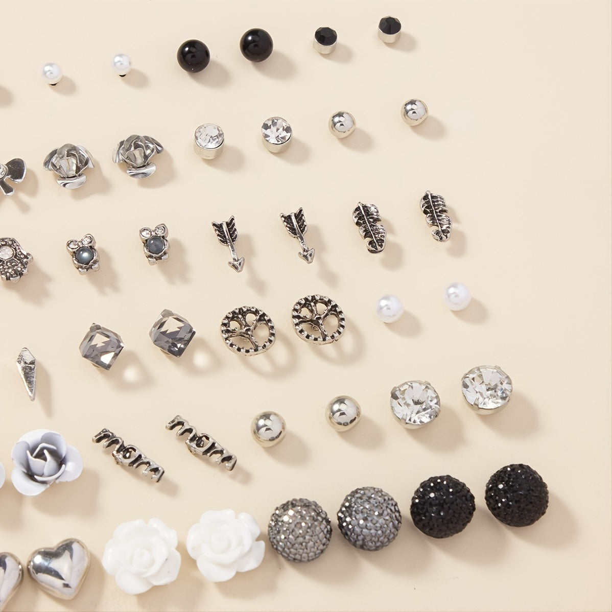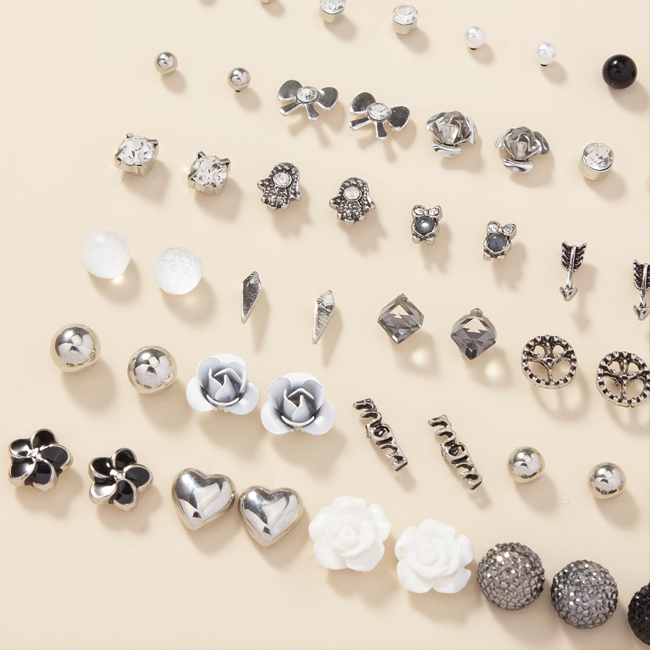 Surprise the special women in your life with this charming set of 30 pairs of pearl, floral, and heart stud earrings. Perfect for birthdays, anniversaries, or any occasion.
