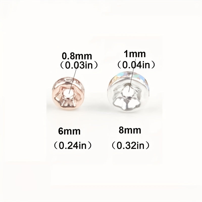 Get this pack of 300 round rhinestone spacer beads made of crystal glass for your jewelry making projects. Perfect for necklaces, bangles, pendants, and more.