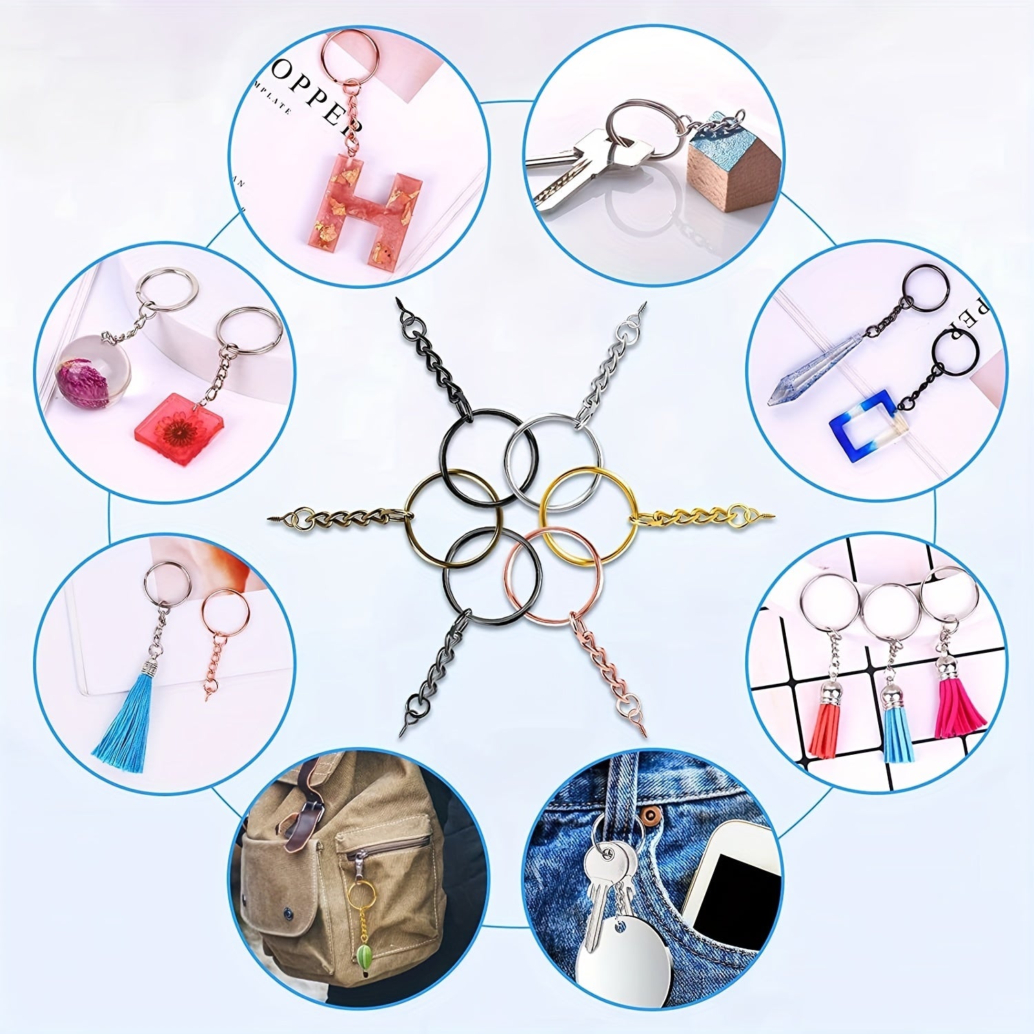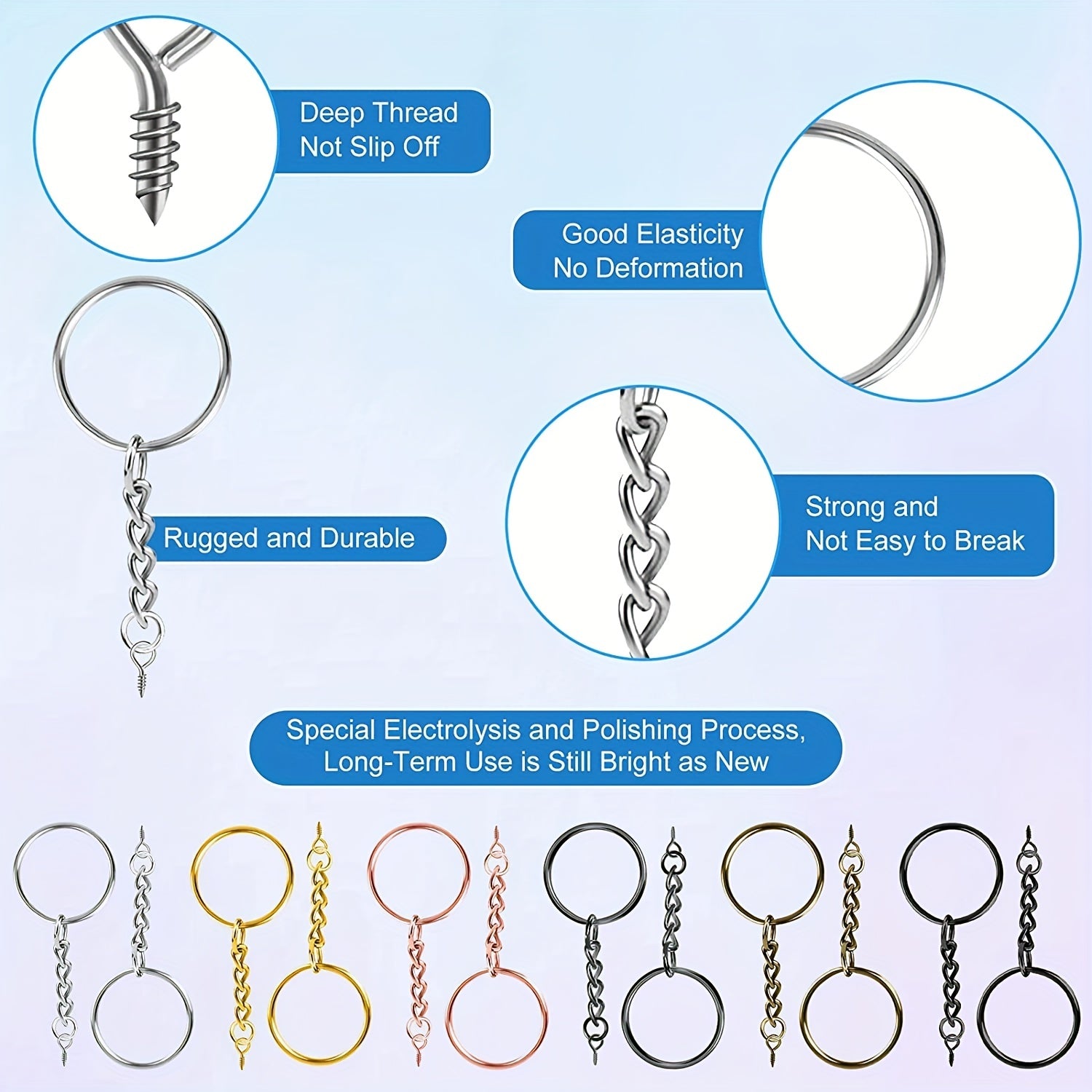 • Includes 300 iron split key rings with chains