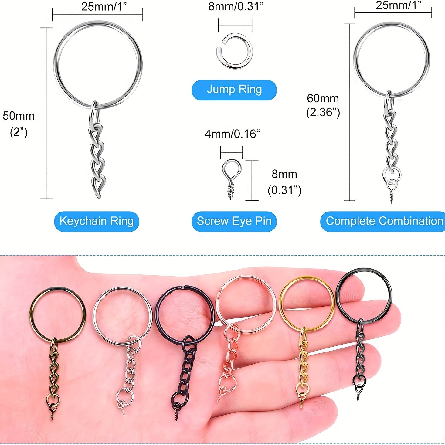 300Pcs Iron Split Key Rings Chain Jump Rings Screw Eye Pins