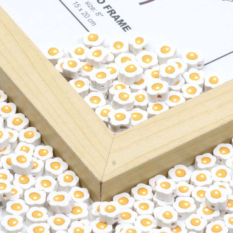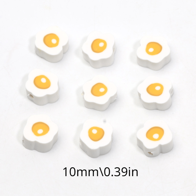 Enhance your jewelry creations with these 10mm polymer clay beads featuring a unique scrambled eggs pattern. Perfect for necklaces, bracelets, and other accessories.