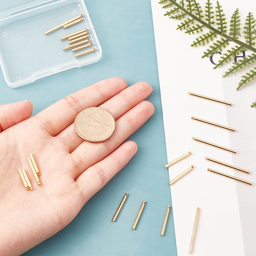 Elevate your jewelry-making with these vertical bar charms in three sizes. Craft necklaces, bracelets, and earrings with a touch of golden luxury.