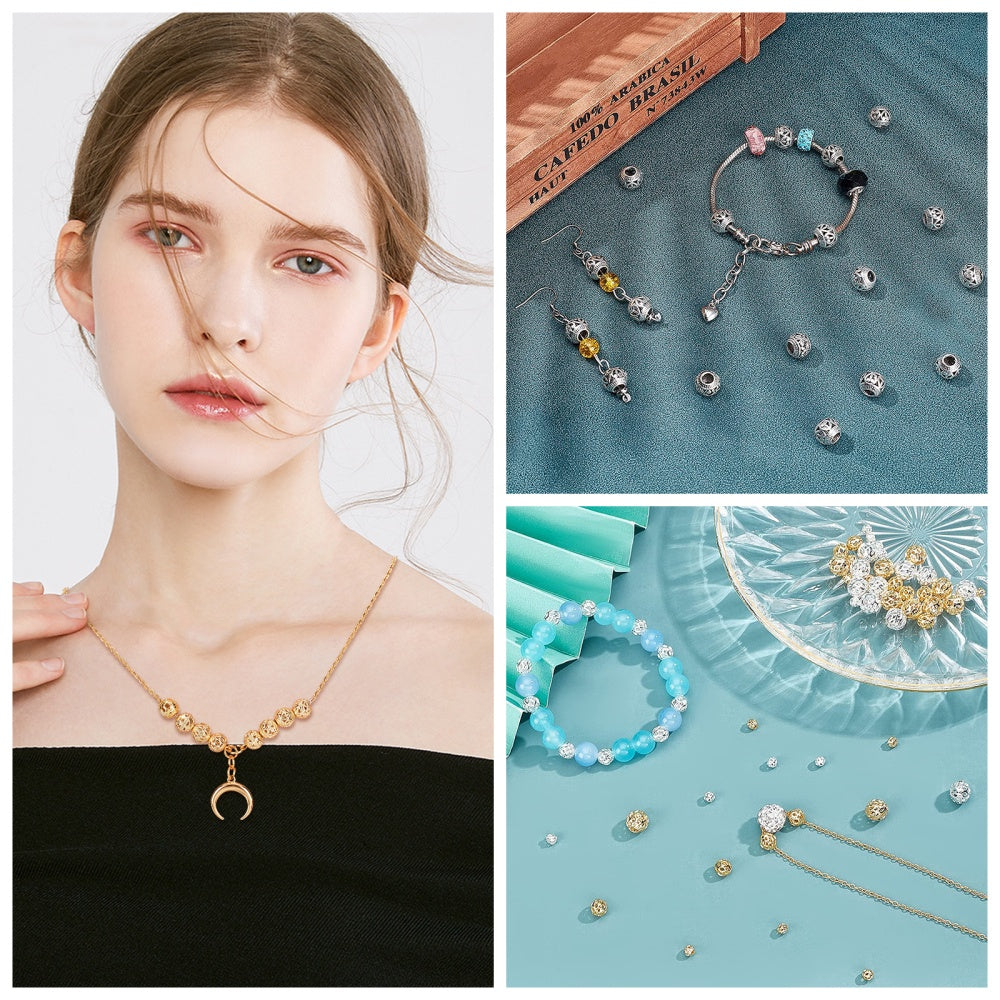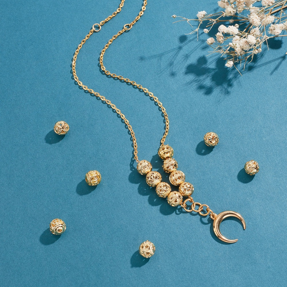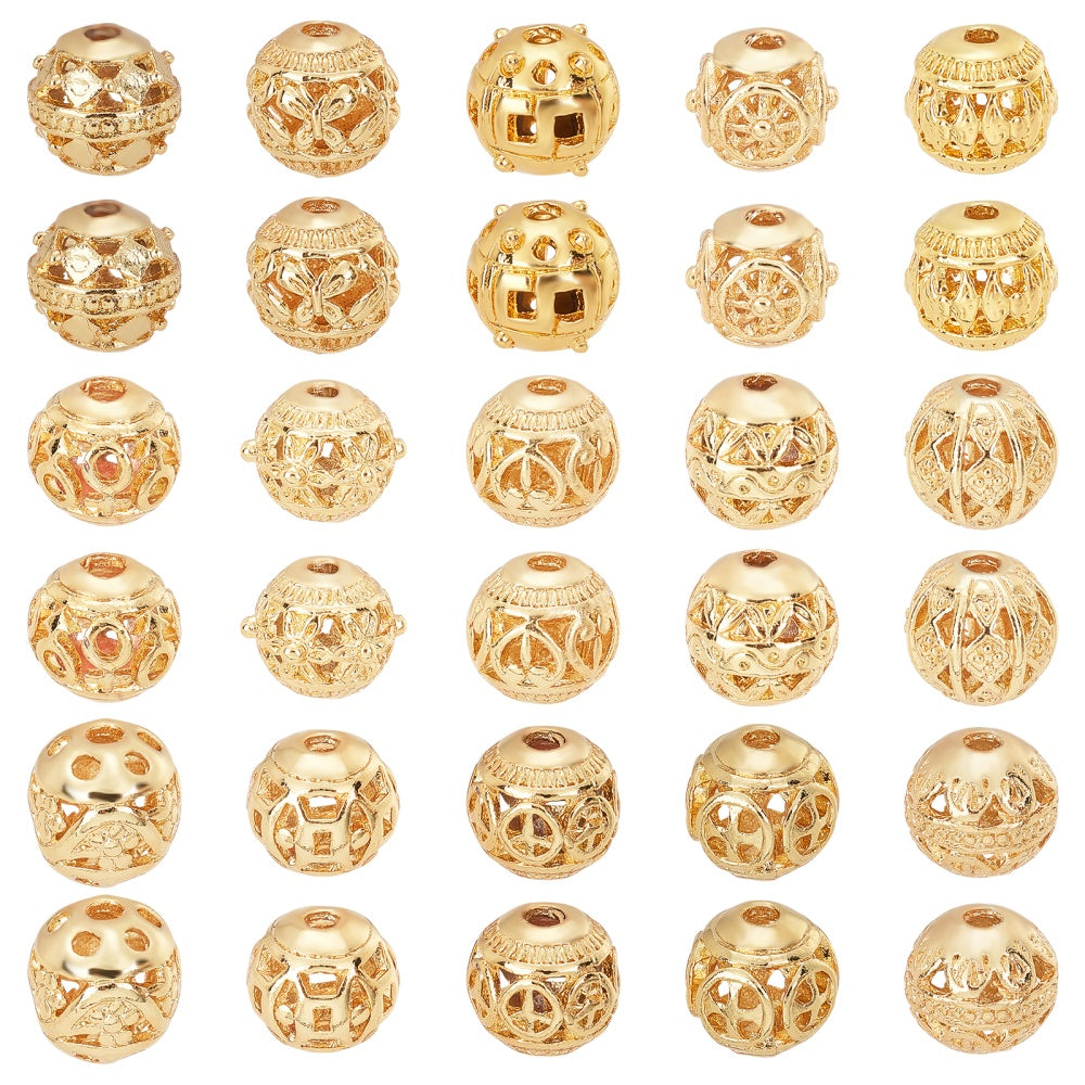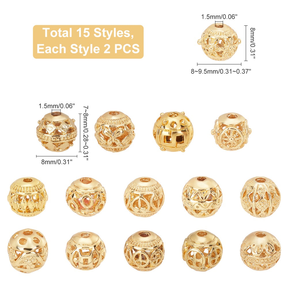 Get this set of 30 spacers beads in 15 styles with 18K gold plated alloy for your DIY jewelry projects. Perfect for making bracelets, necklaces, and more.