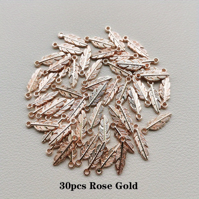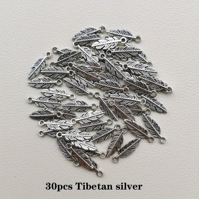 Get this set of 30 antique style bronze feather charms for creating unique bracelets and necklaces. Perfect for DIY jewelry making projects.
