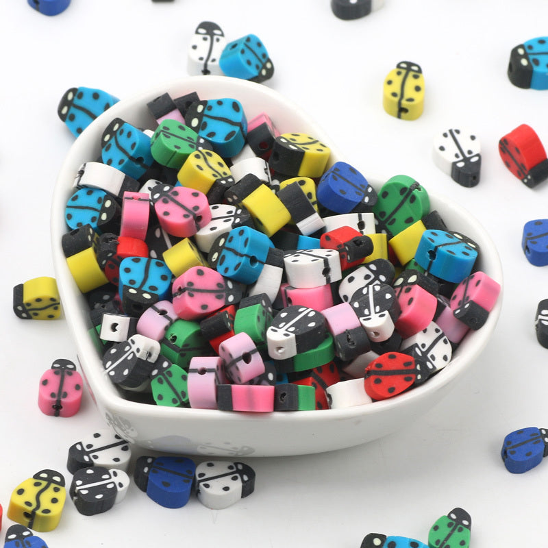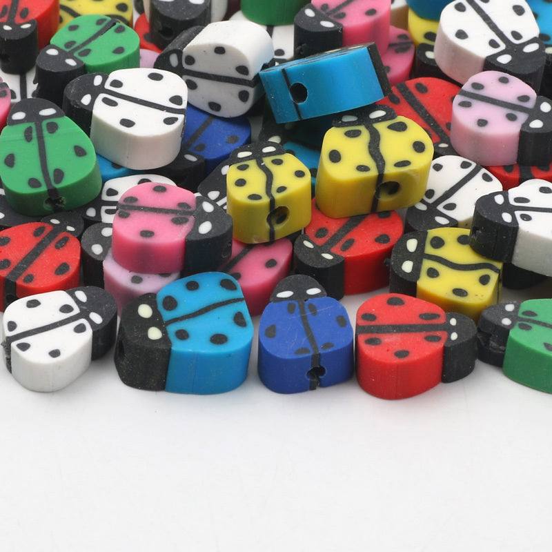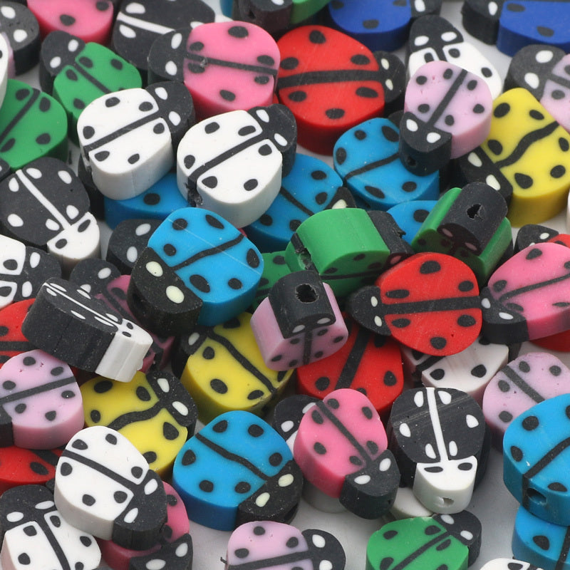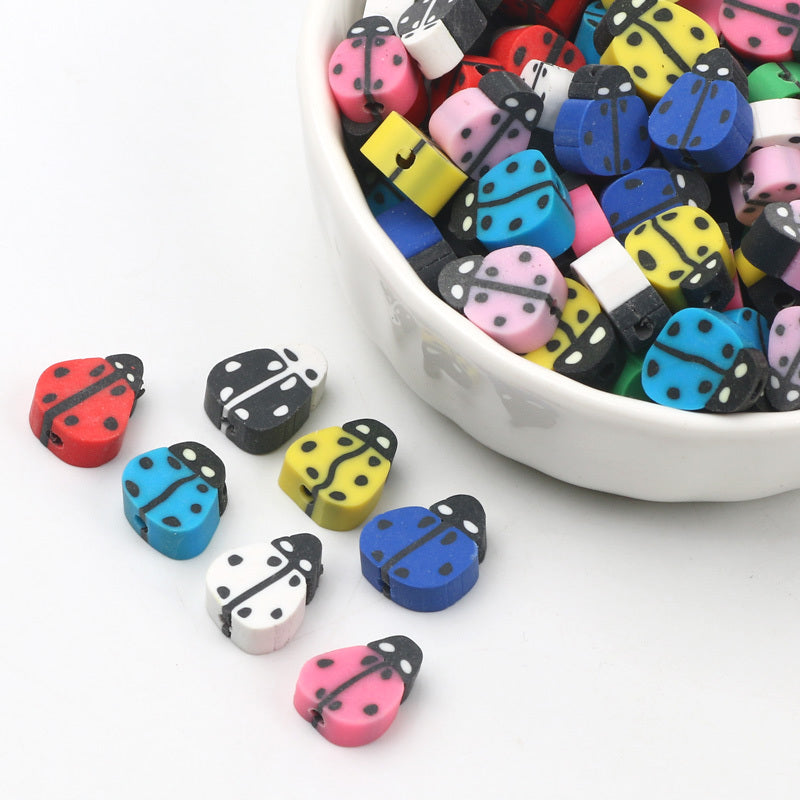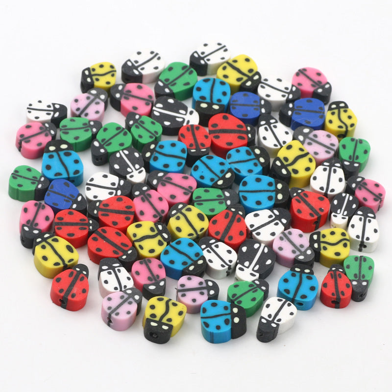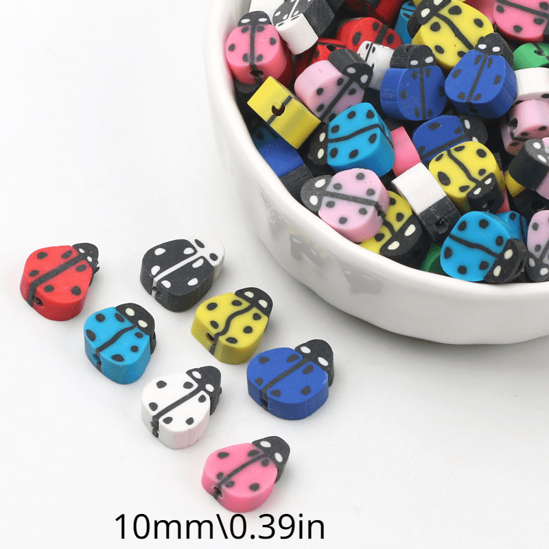 Enhance your jewelry making projects with this set of 30 colorful ladybug pattern polymer clay beads. Perfect for creating vibrant and fun accessories.