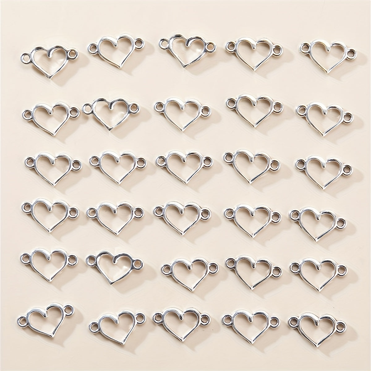 Create stunning jewelry pieces with these 30 hollow hearts connector charms. Perfect for necklaces, bracelets, and earrings.