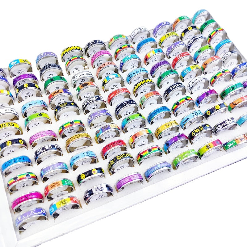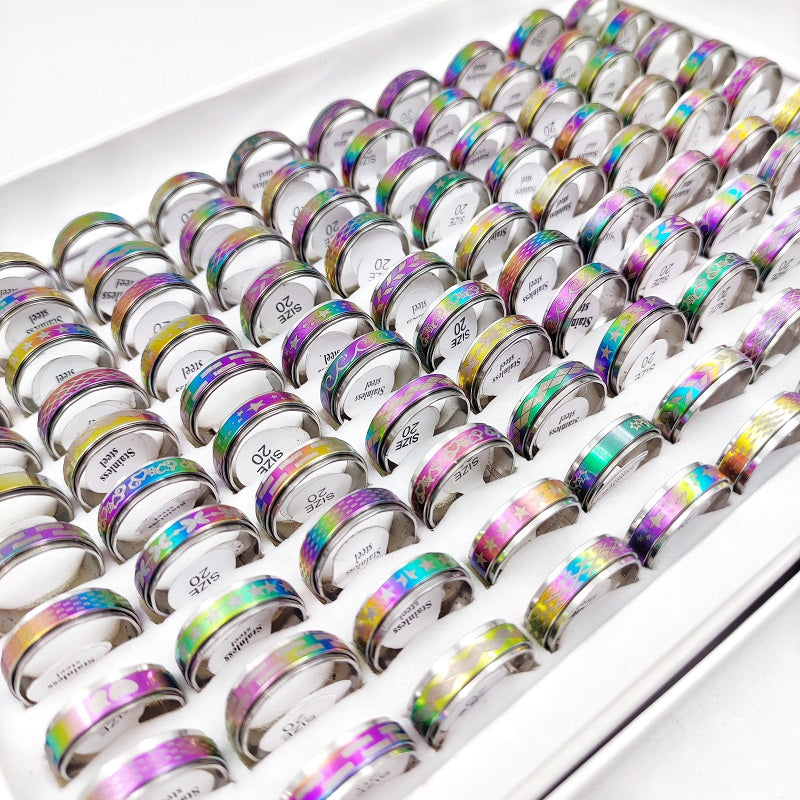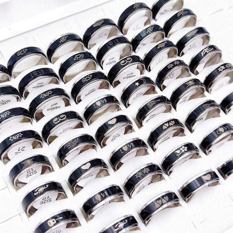 This set includes 30 classic stainless steel rings with assorted stripe designs. Perfect for everyday wear or special occasions.
