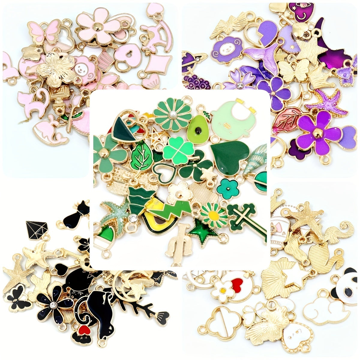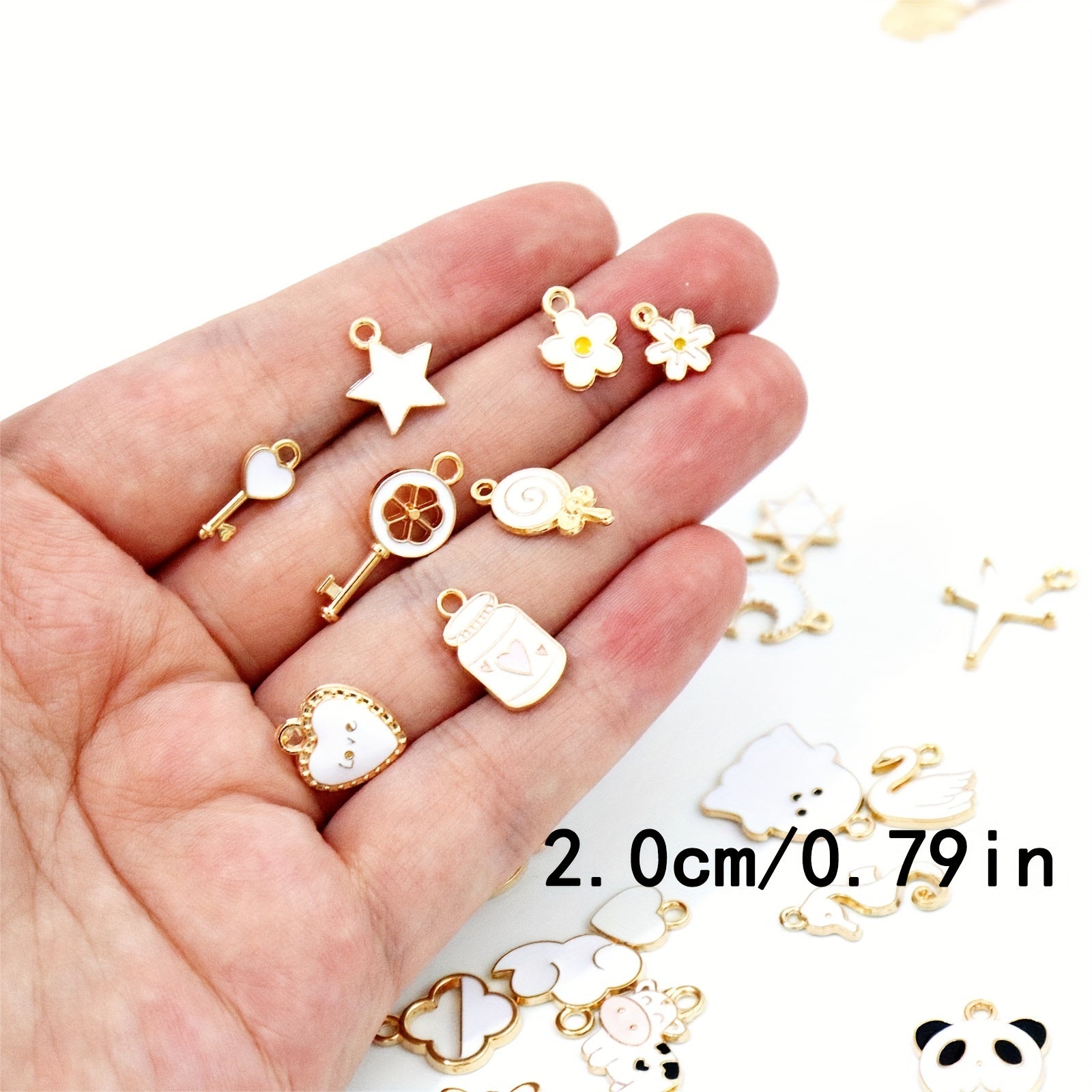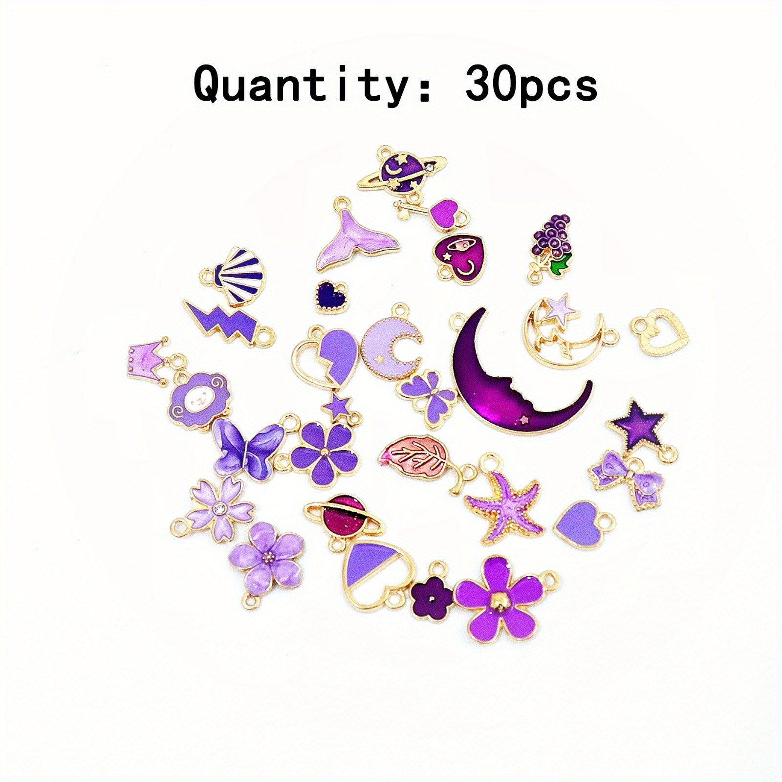 Add a touch of glam to your bracelet with these 30 colorful alloy drip oil pendants in crown, star, love, and cloud shapes. Perfect for DIY projects.