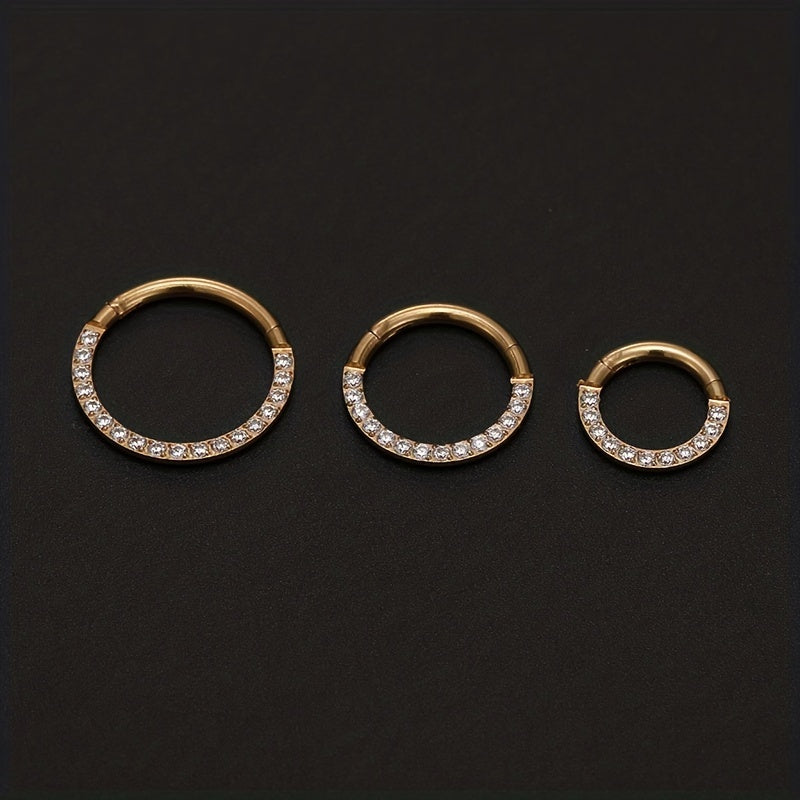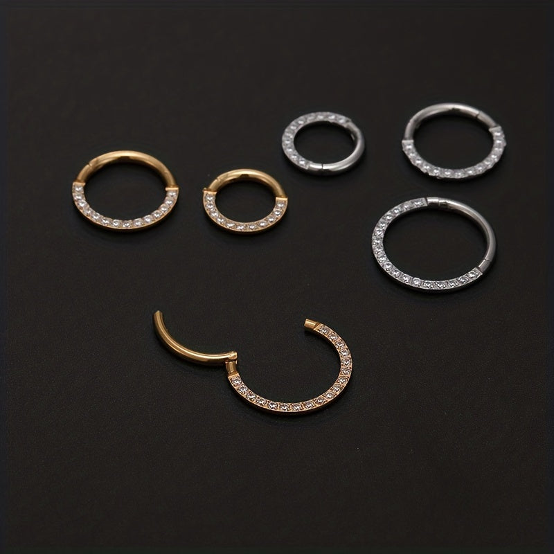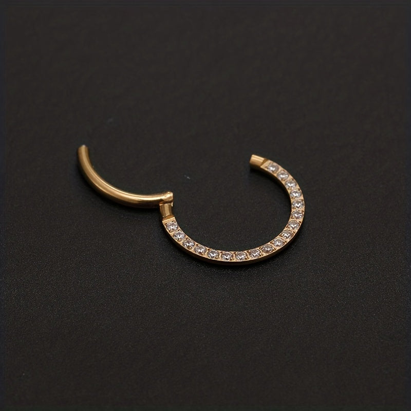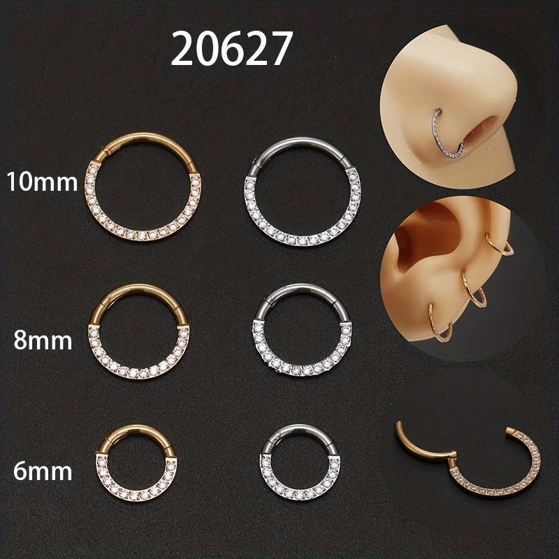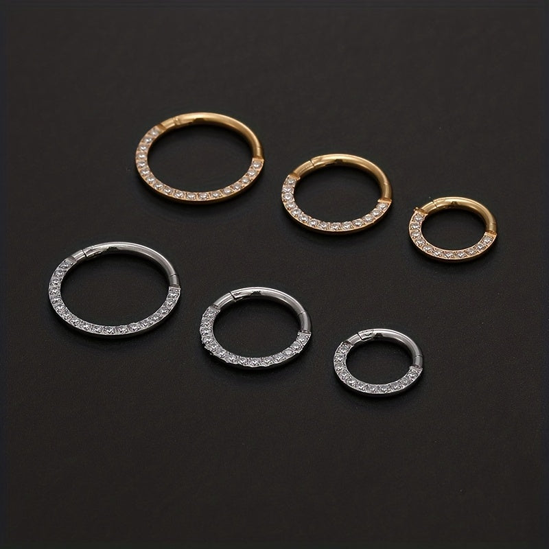 This stainless steel ring with inlaid zircon is suitable for nose, ear, and body piercings. It is designed for men and adds a touch of elegance to your piercing.