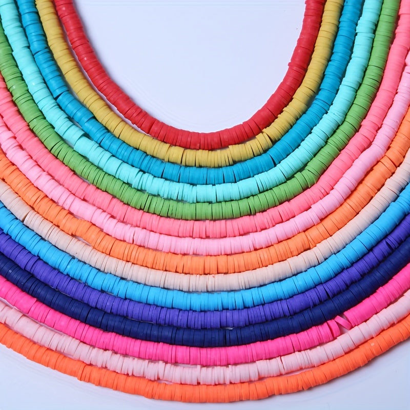Get creative with these flat round polymer clay spacer beads perfect for bracelets and necklaces. Use them to design your own unique jewelry pieces.