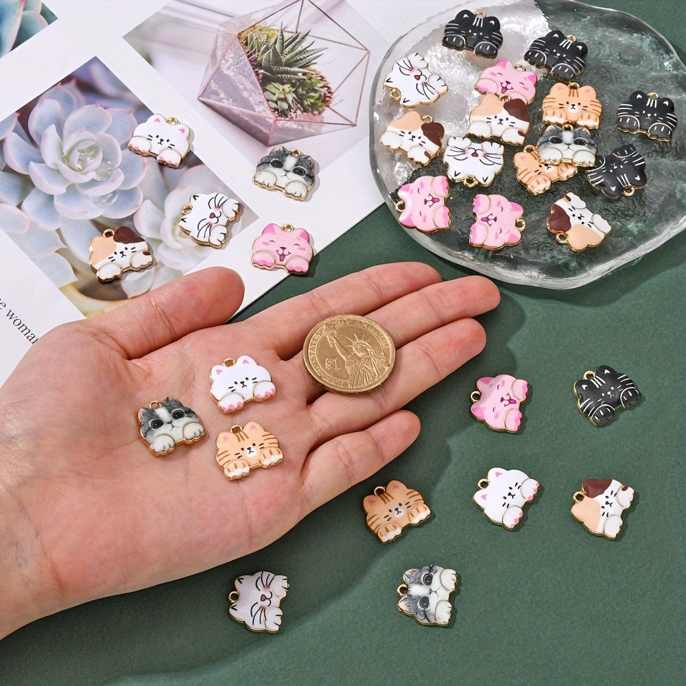 This set includes 35 cat charms in assorted designs, perfect for creating unique jewelry pieces. Made of alloy enamel, these charms are durable and lightweight. Use them to make necklaces, bracelets, earrings, and more.