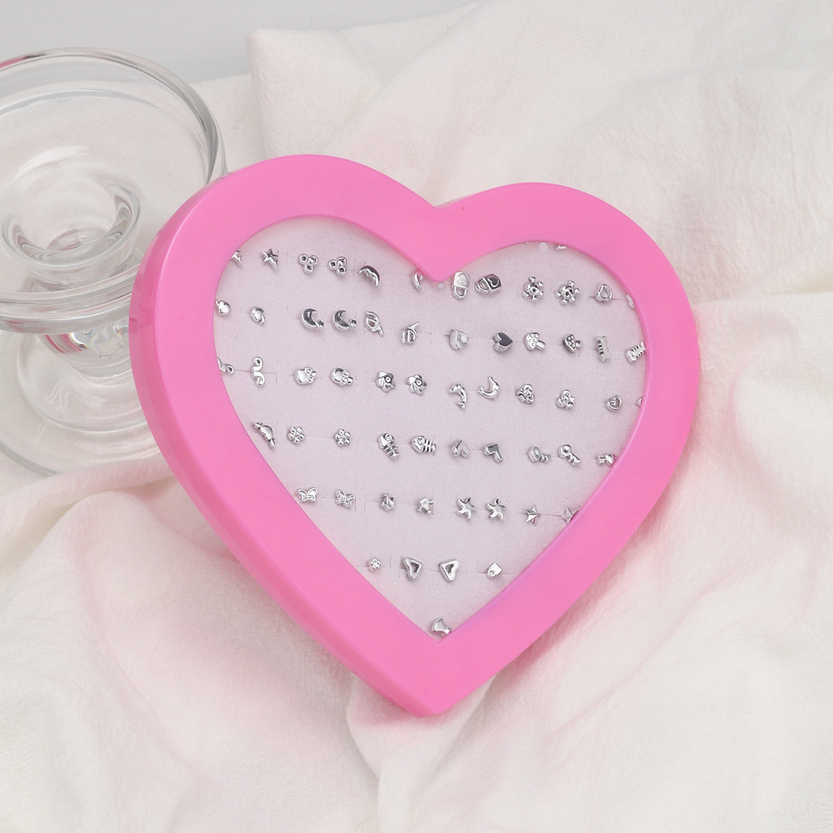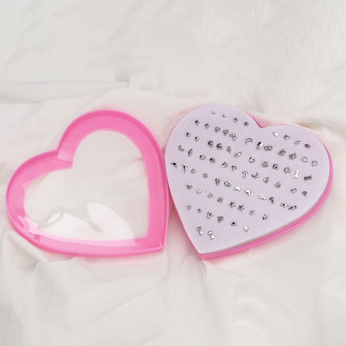 This set includes 36 pairs of stud earrings in various styles, perfect for girls or as a gift. Comes in a box for easy storage and organization.