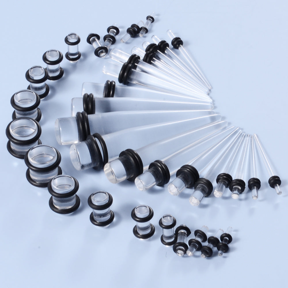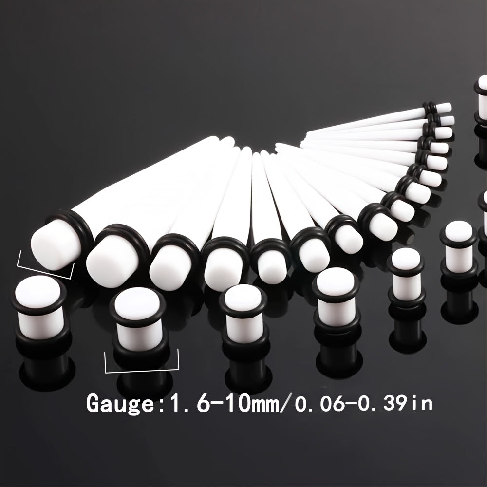 Upgrade your piercing game with this 36-piece set of acrylic ear expanders. Perfect for stretching your ear piercings to your desired size.