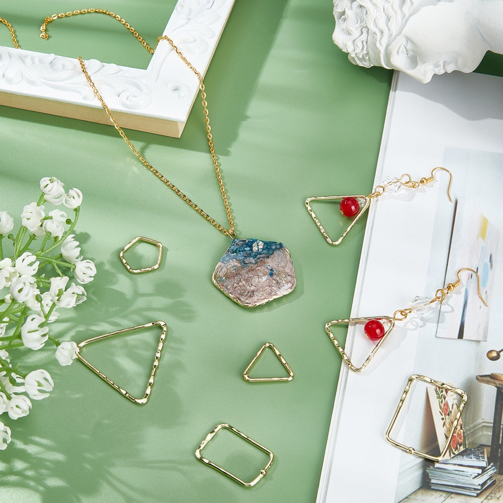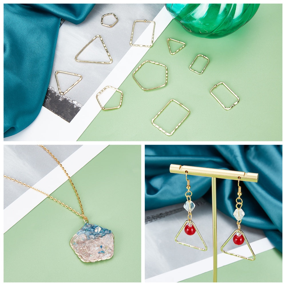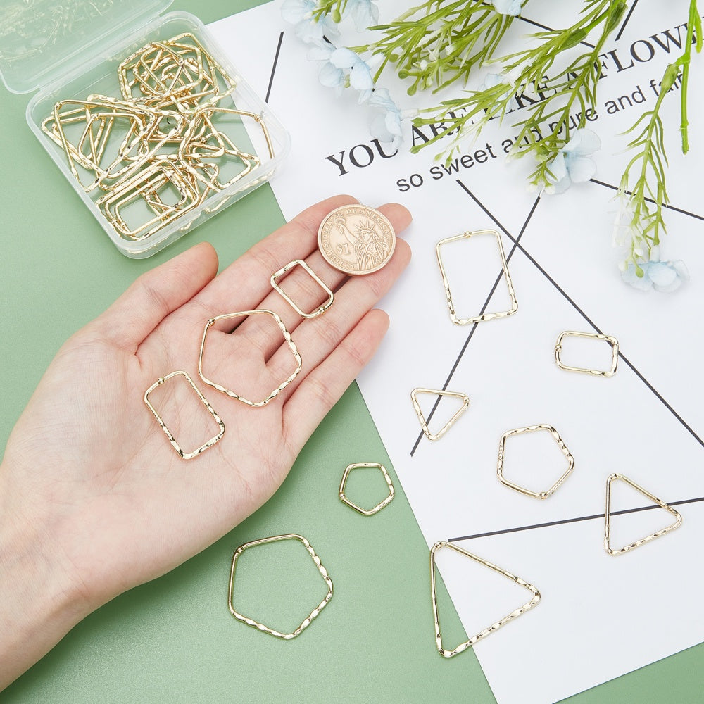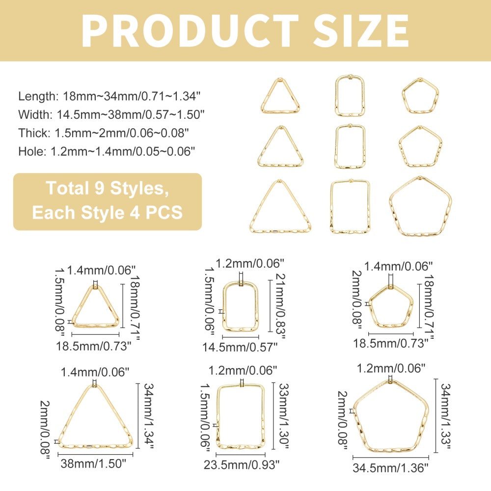 This pack includes 36 pieces of golden hollow frame pendants in 9 shapes. Ideal for creating DIY earrings, necklaces, and other jewellery items.