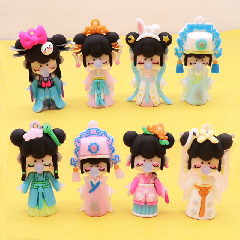 3D Traditional Girl Keychain Doll Pencil Case Ballpoint Pen Pendant
