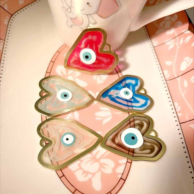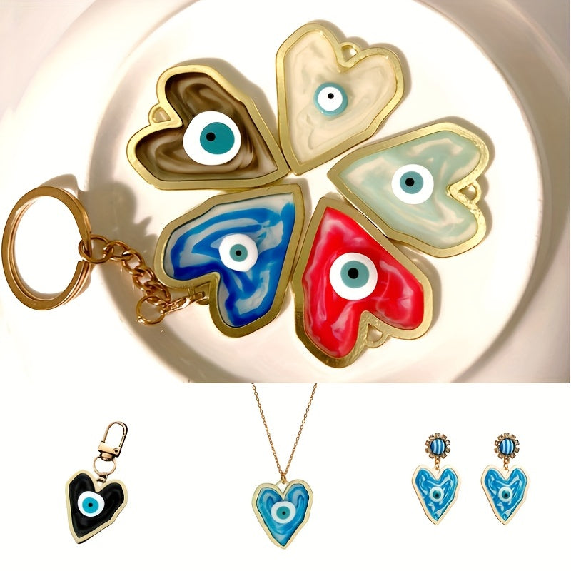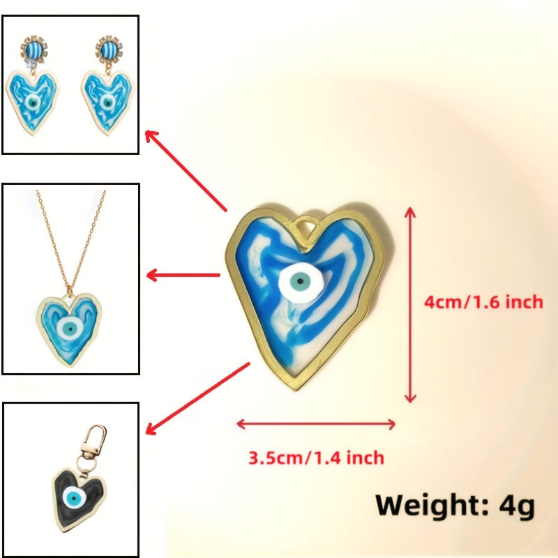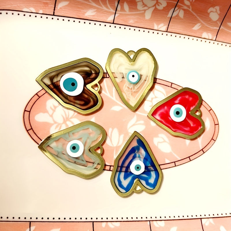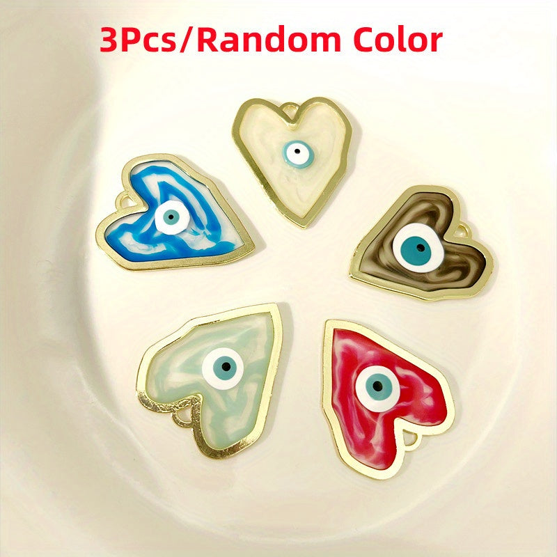 3Pcs 5Pcs Random Irregular Heart Shape Evil Eyes Pattern Pendants Charms