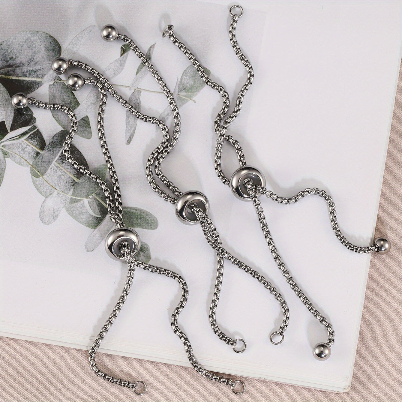 This set includes 3 stainless steel adjustable slider chains perfect for creating custom jewelry pieces such as pendants and bracelets.