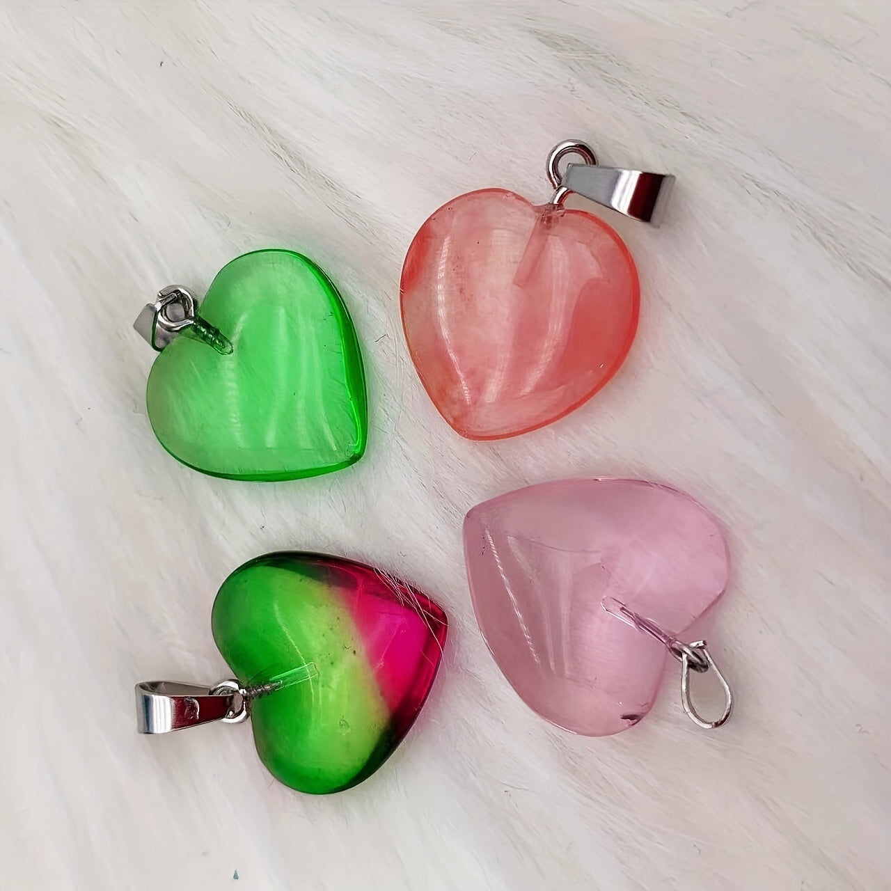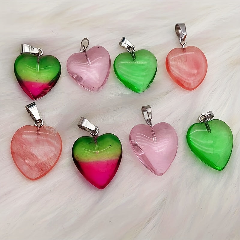 Add a pop of color and style to your outfit with these colorful cat eye heart-shaped pendants. These pendants are perfect for creating your own unique necklaces and jewelry pieces.