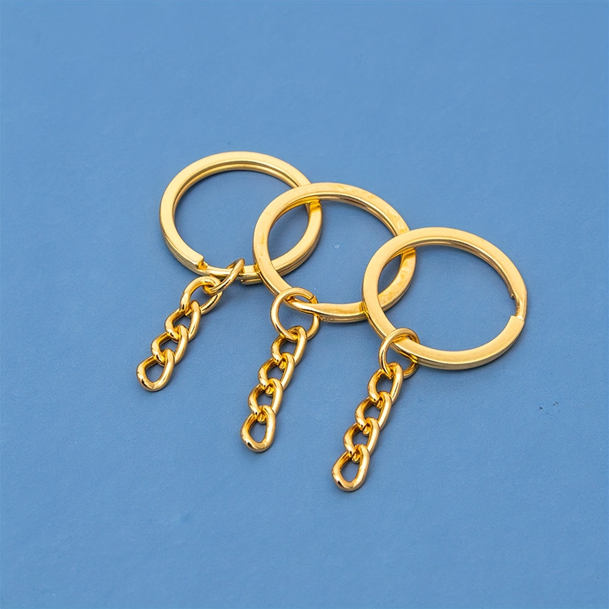 Enhance your style with this set of 3 classic golden and silver circle key ring keychain pendants. Perfect for accessorizing your keys or bags.