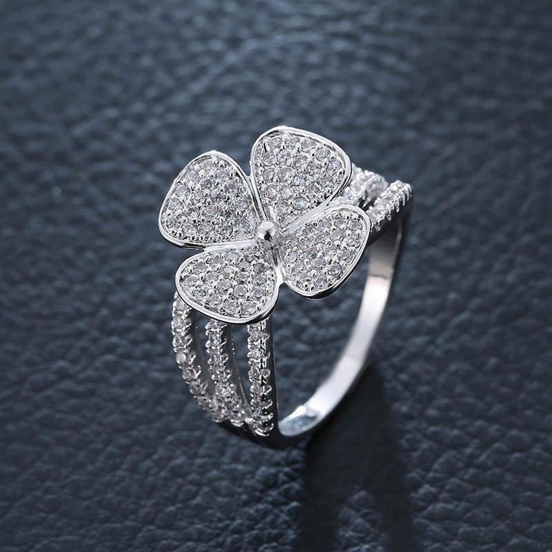 Add a touch of luck to your style with this classic 4 leaf clover zircon ring. It is elegantly designed and suitable for women and girls. The ring is plated with 18K gold, making it a stunning accessory for any outfit.