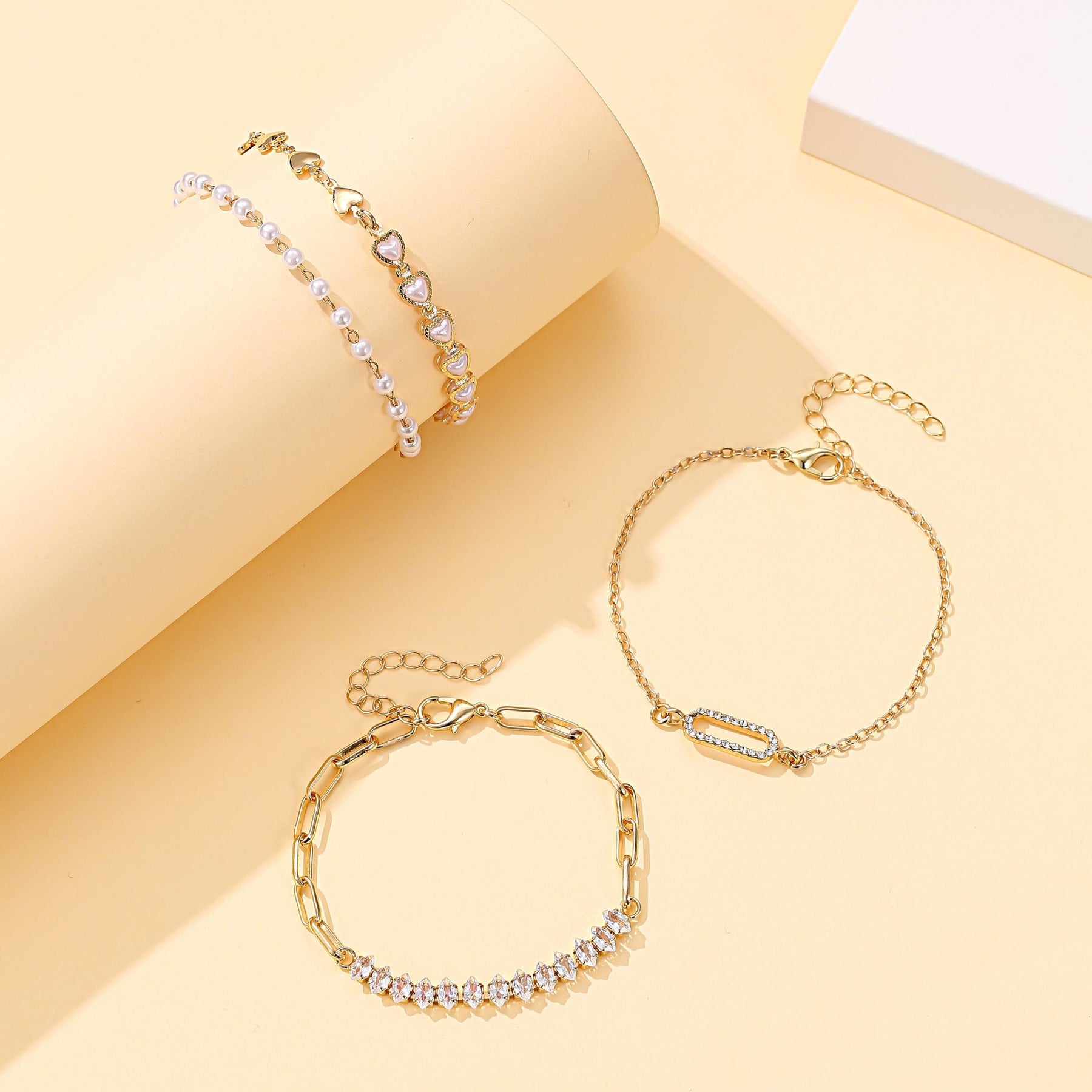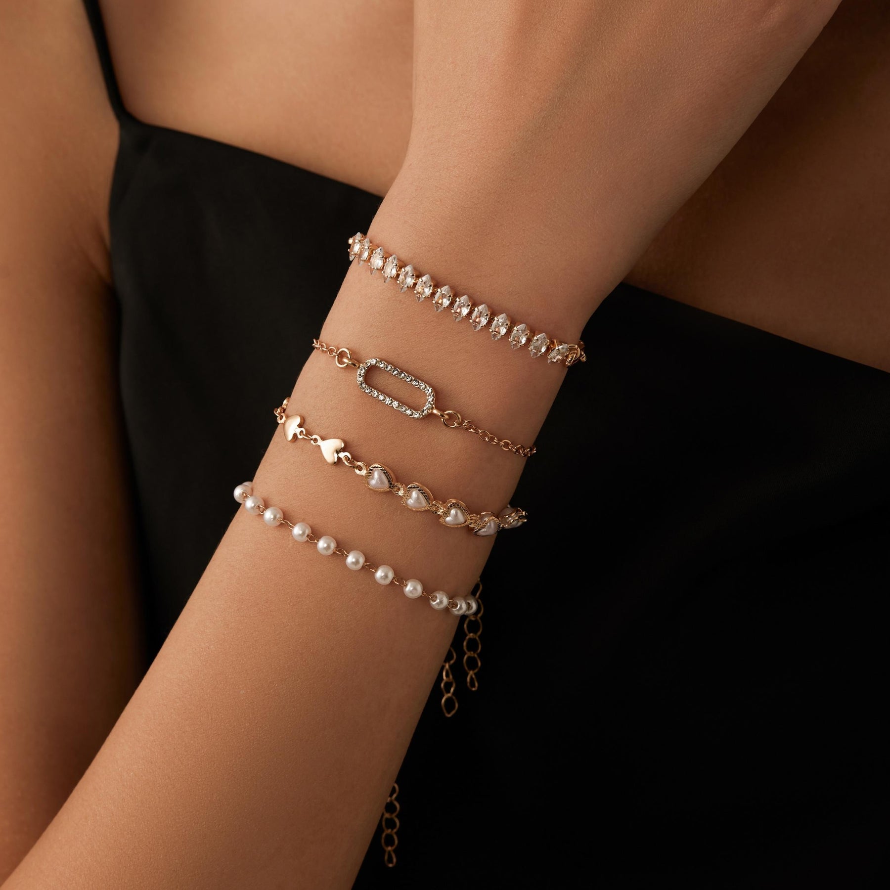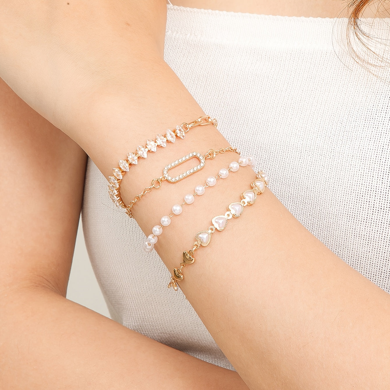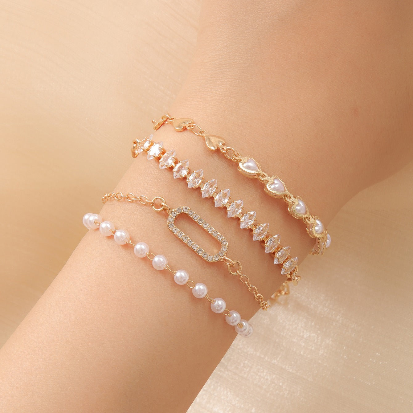 • Set of 4 beaded chain bracelets with faux pearls and zircon beads