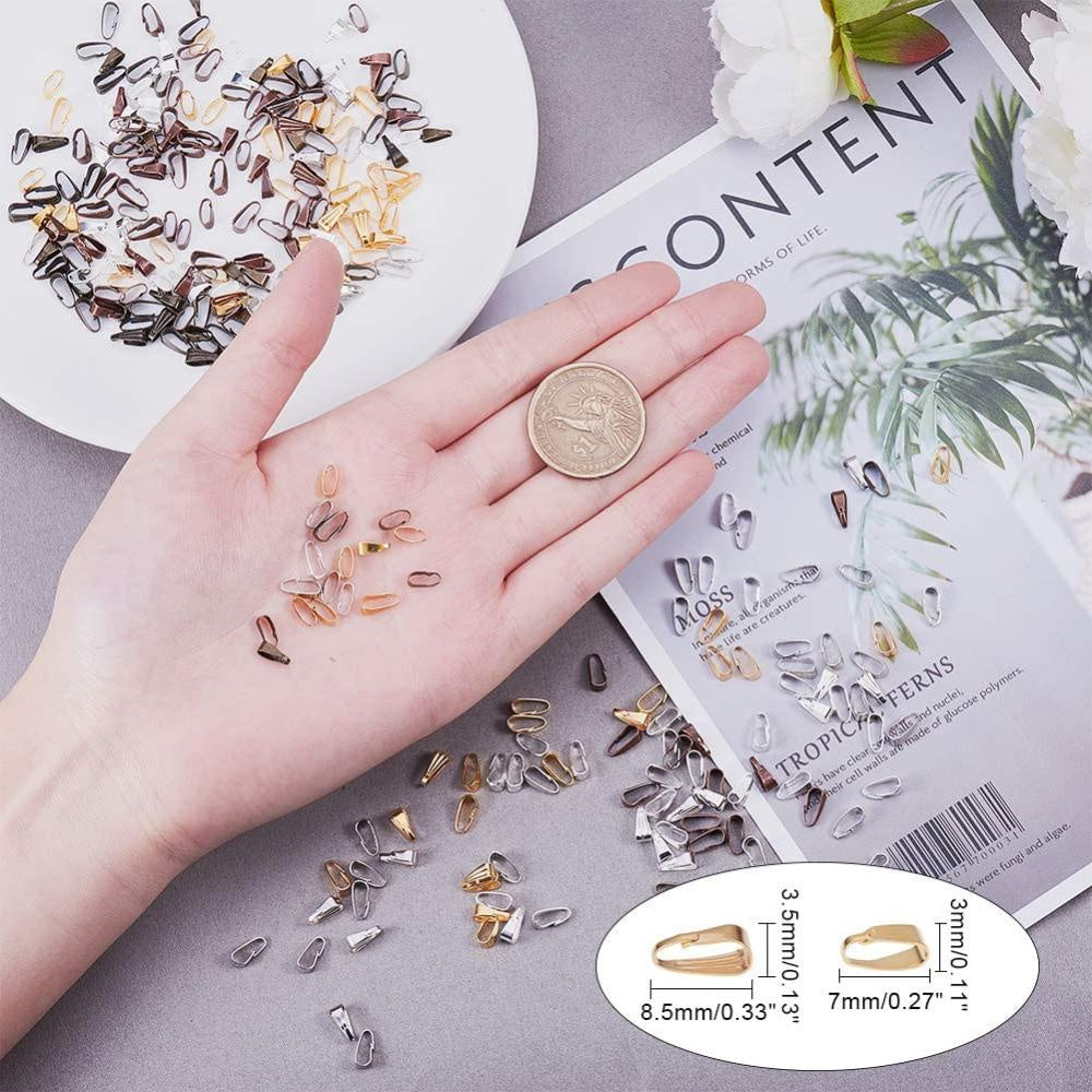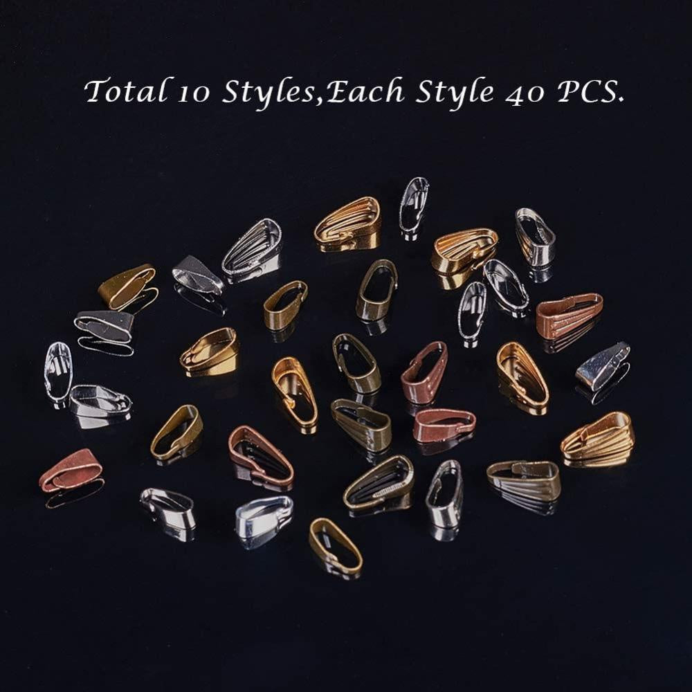 Get 400 pieces in 5 colors and 2 sizes of brass snap bail hook pinch clip pendant charms clasps for your DIY earrings, necklace, and jewelry making projects.
