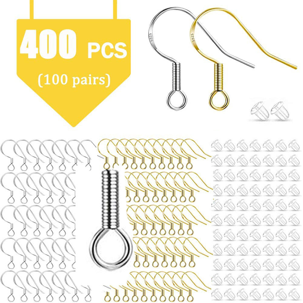 Get this pack of 400 silver plated ear hook DIY eardrop material for your jewelry making projects. Perfect for creating earrings and other accessories.