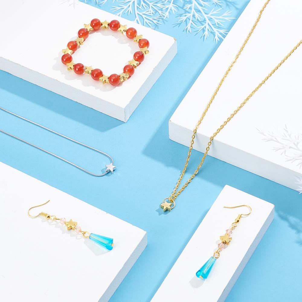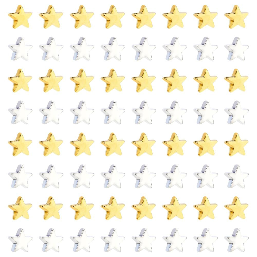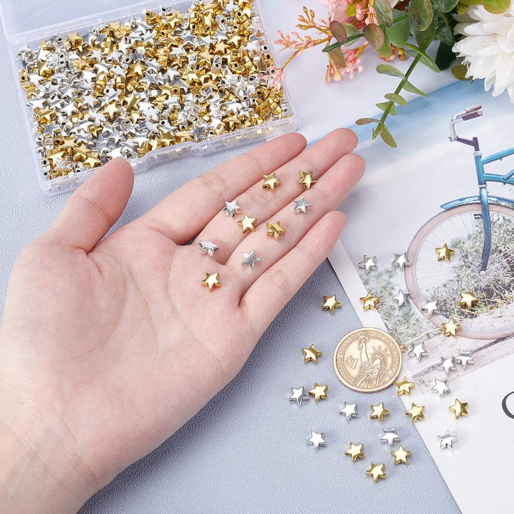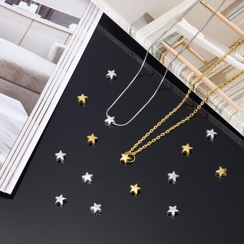 Get creative with these silvery or golden star-shaped alloy beads that are perfect for making necklaces, earrings, bracelets, and other crafts.