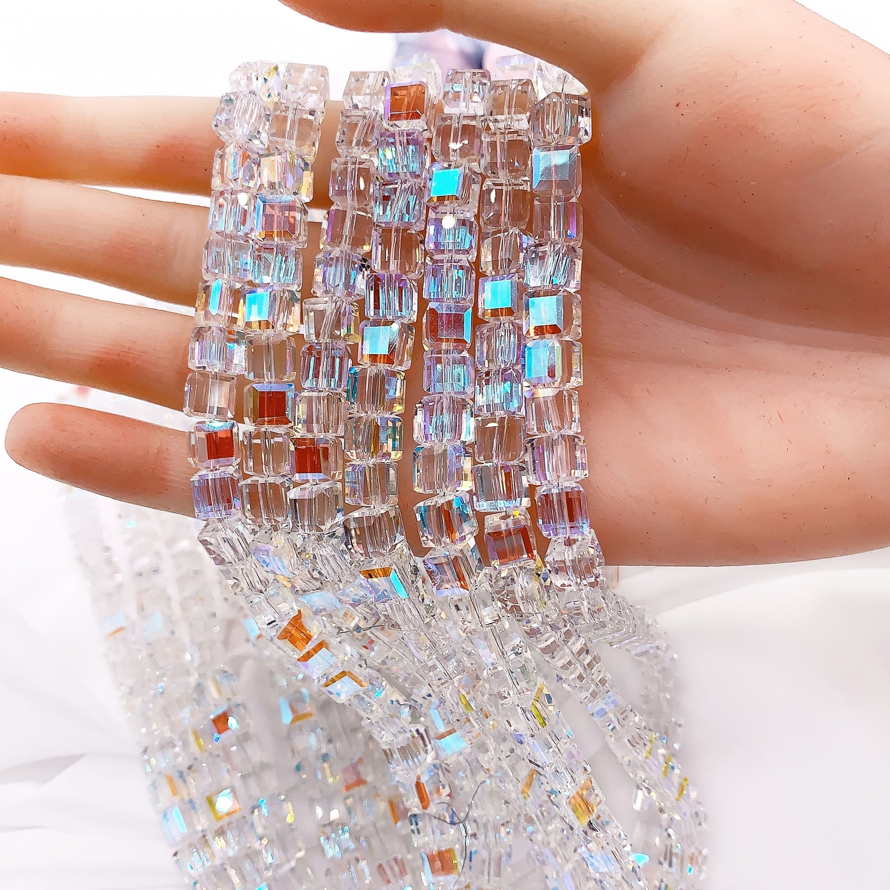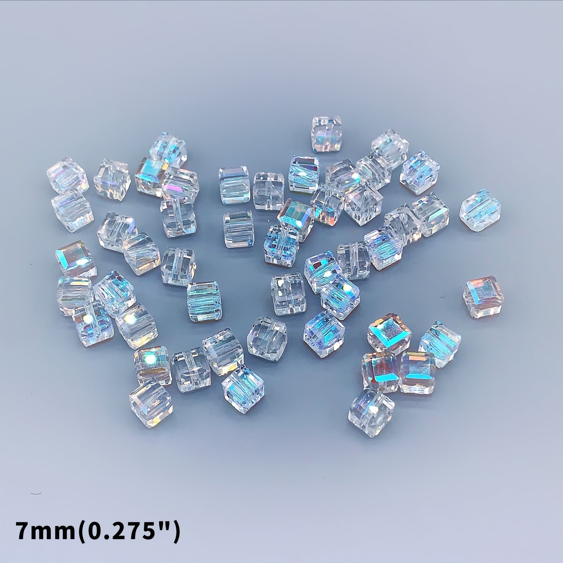 These 0.275 inch cube AB crystal high faceted glass beads are perfect for making jewelry, bracelets, and more. Add a touch of sparkle to your creations with these beautiful spacer beads.
