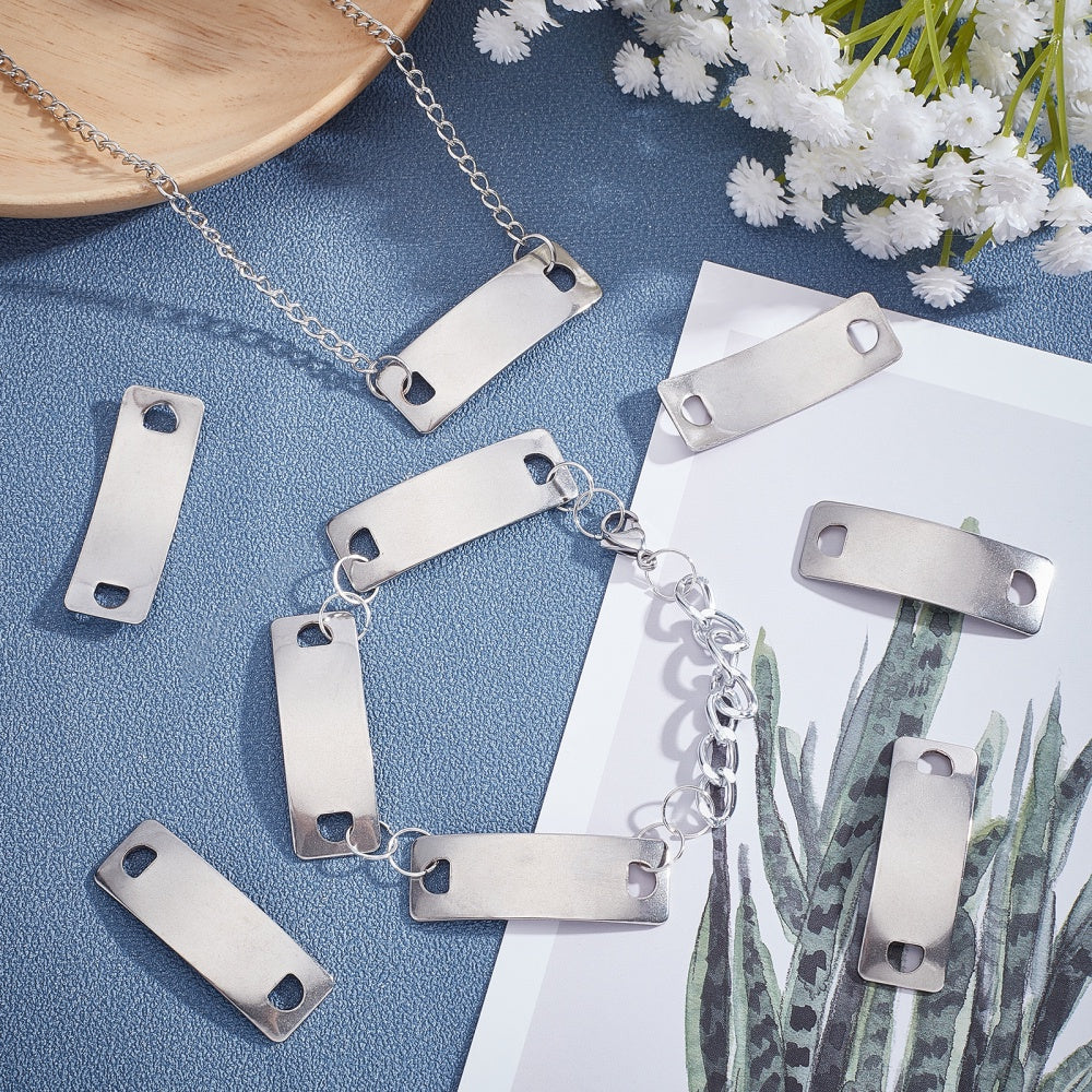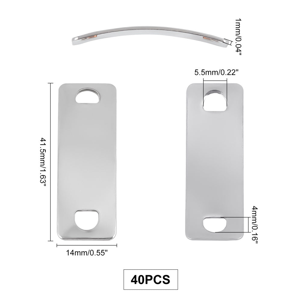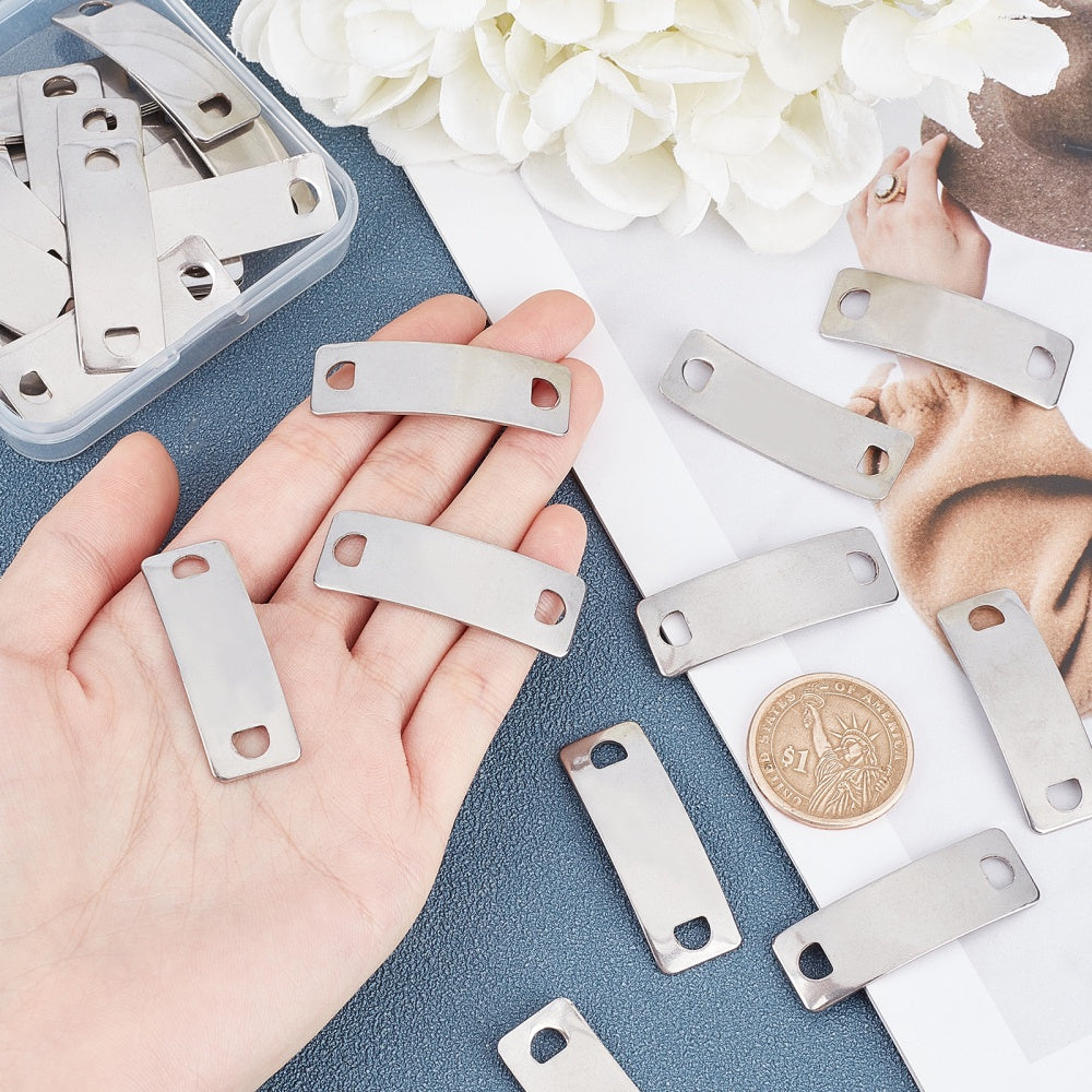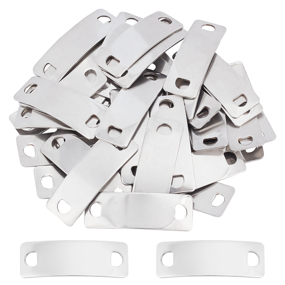Get 40pcs of sturdy stainless steel curved rectangle metal stamping blanks for your jewelry making projects. Each blank measures 41.5mm in size.