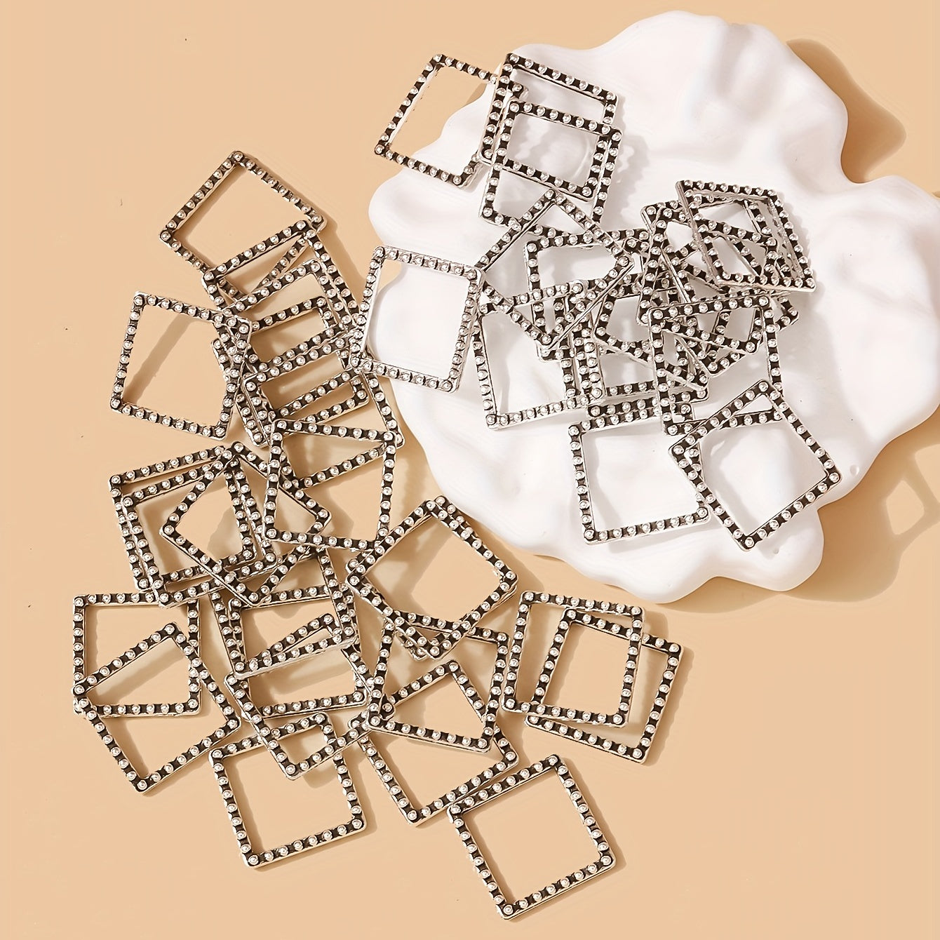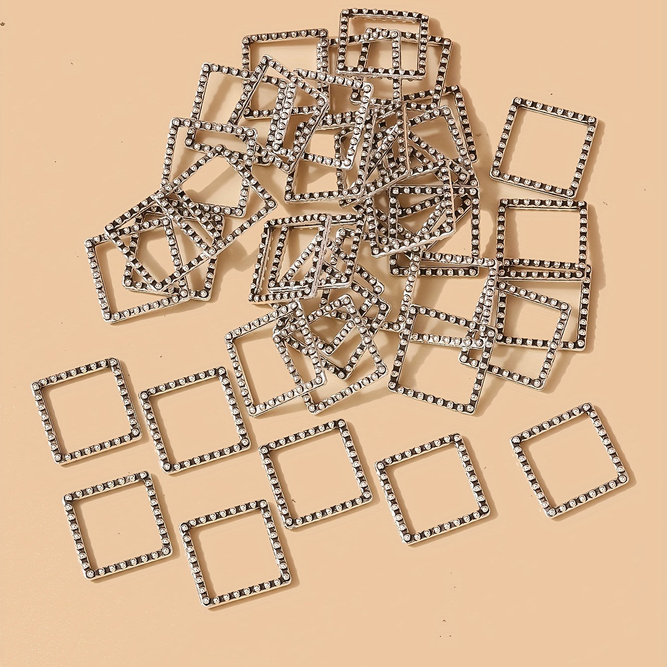 Enhance your jewelry designs with this set of 40 antique silvery square accessories. Perfect for making unique and eye-catching jewelry pieces.