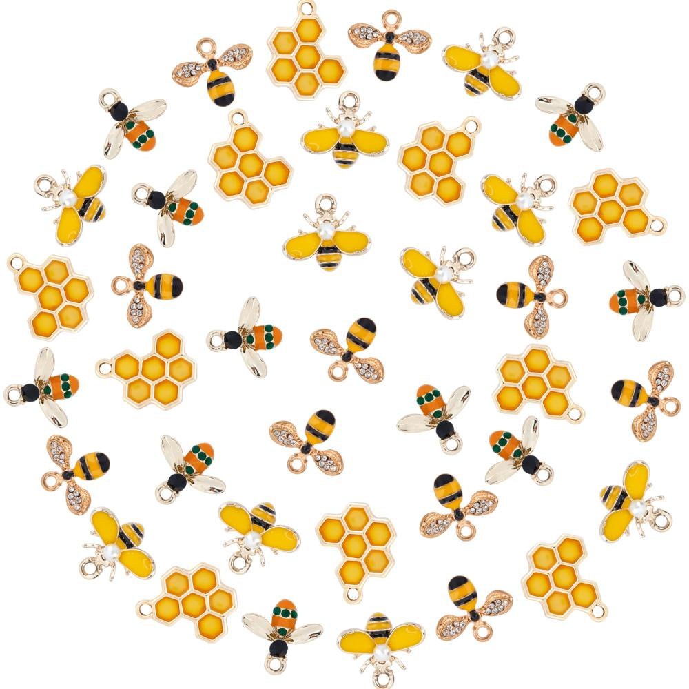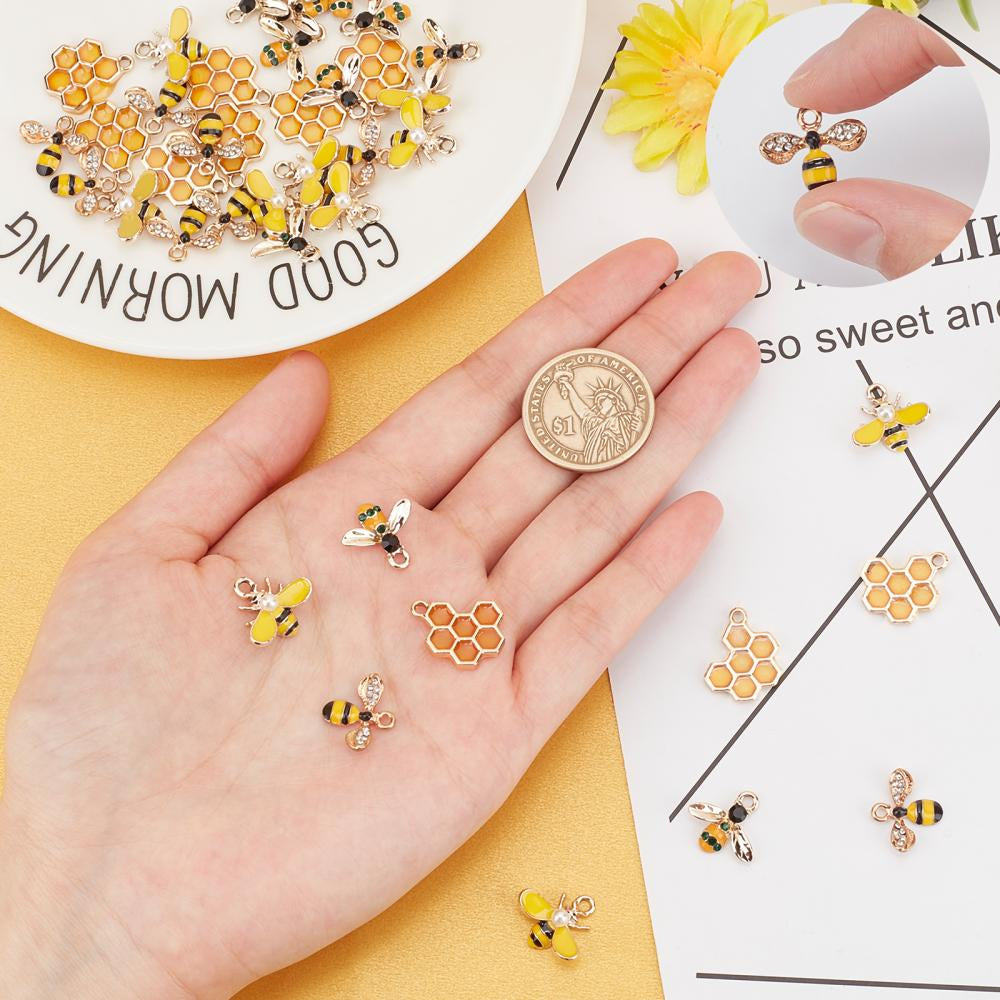Enhance your jewelry-making projects with these charming enamel and rhinestone bee and honeycomb pendants. Perfect for creating earrings, bracelets, necklaces, and other accessories.