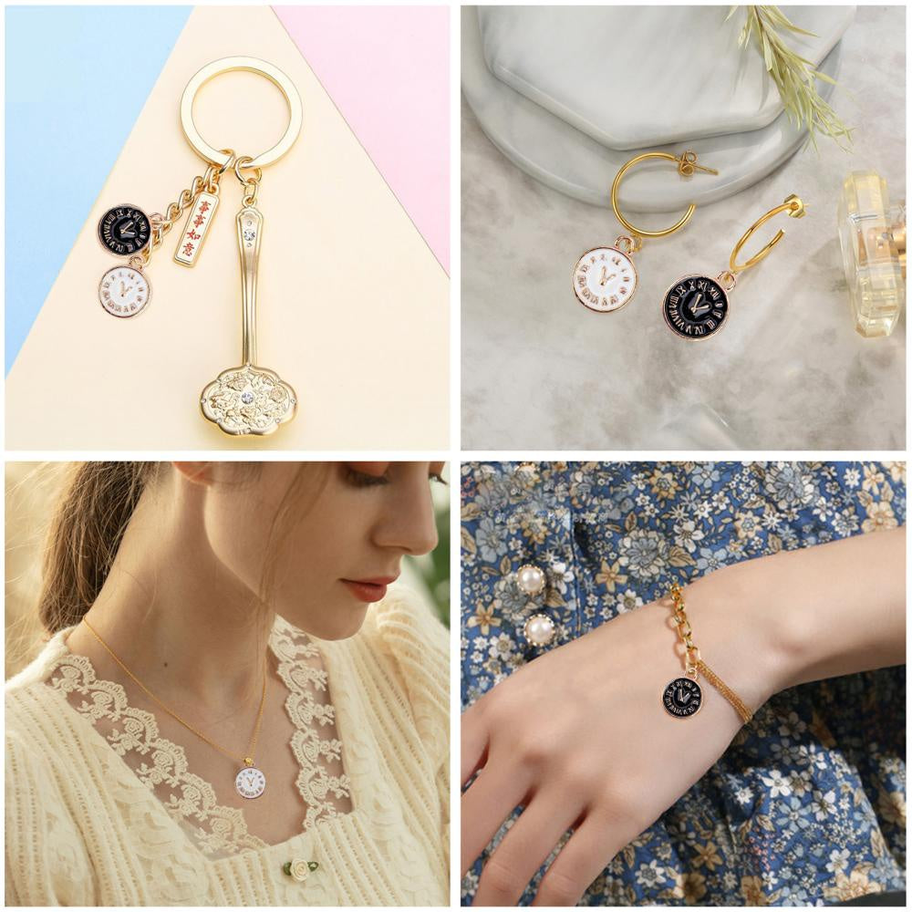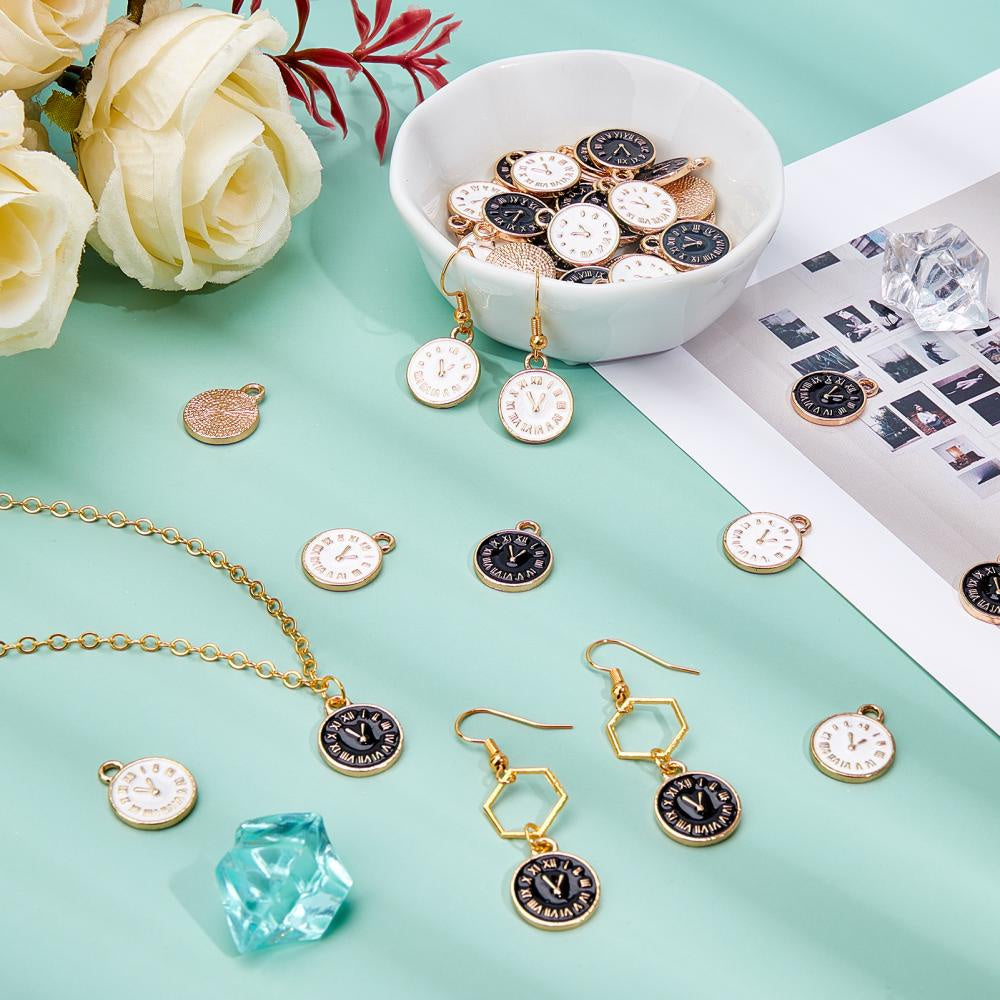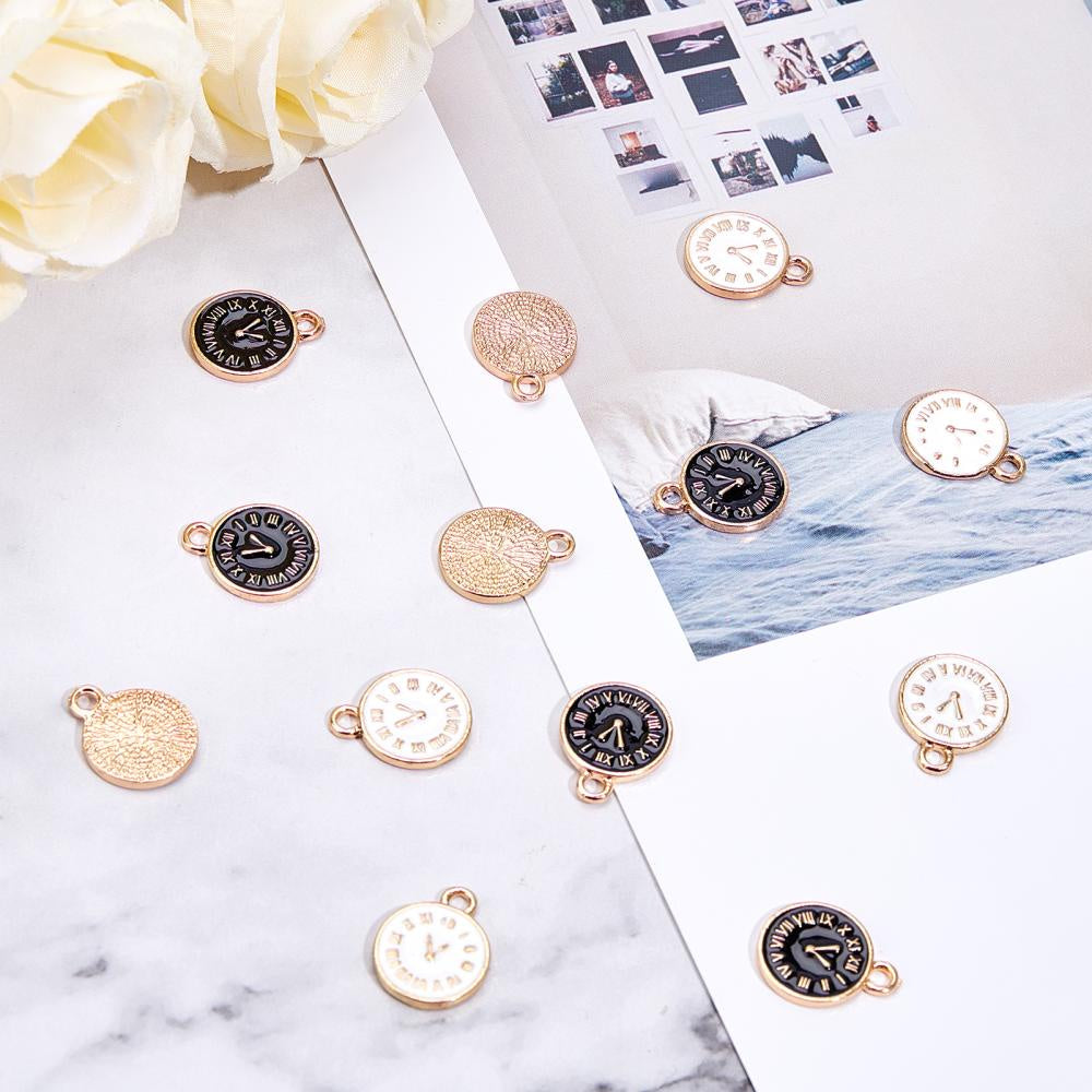 These clock shape enamel pendants are perfect for DIY jewelry making including bracelets, necklaces, and earrings. The light golden color adds an elegant touch to your creations.