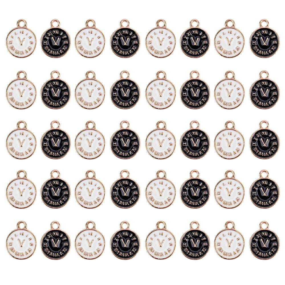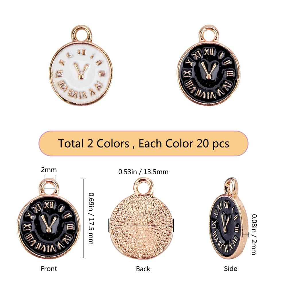 40pcs Light Golden Clock Shape Alloy Enamel Pendants for DIY Jewelry Making