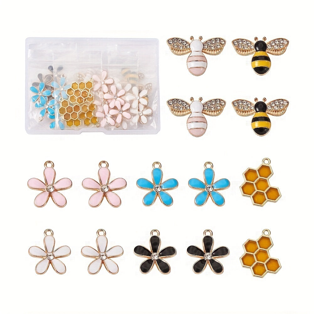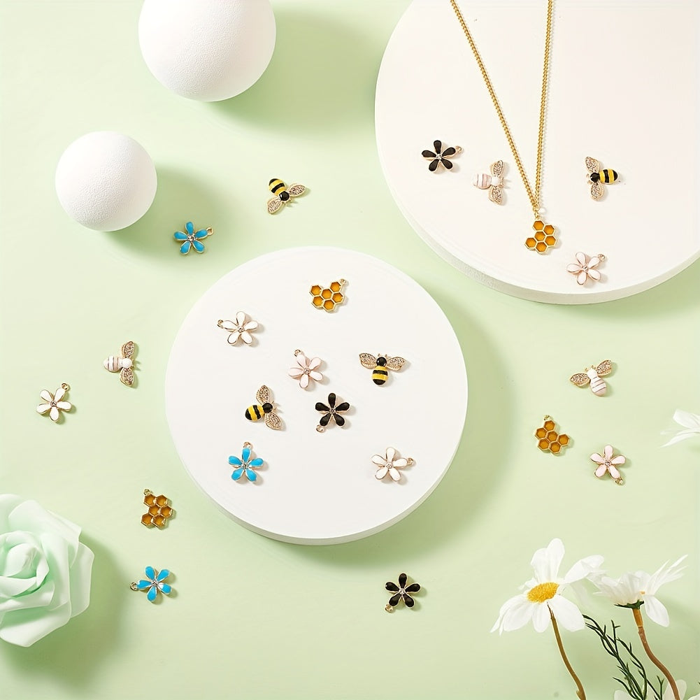 Get a variety of 7 styles of bee, honeycomb, and flower patterns in this set of 42 alloy enamel pendants and cabochons. Perfect for jewelry making and crafting projects.