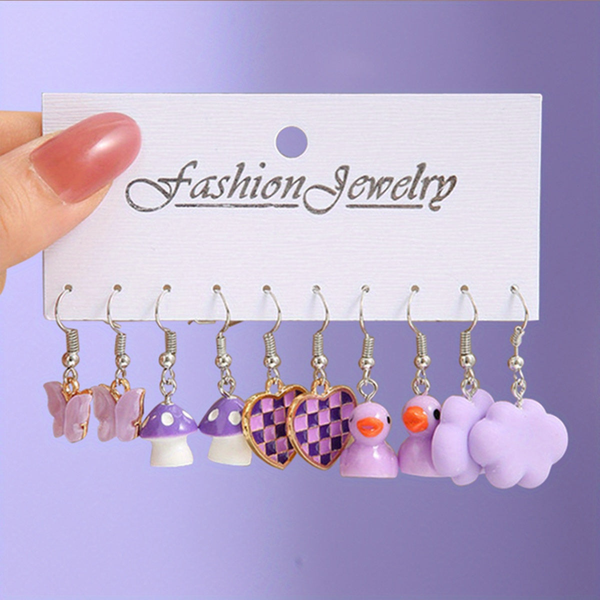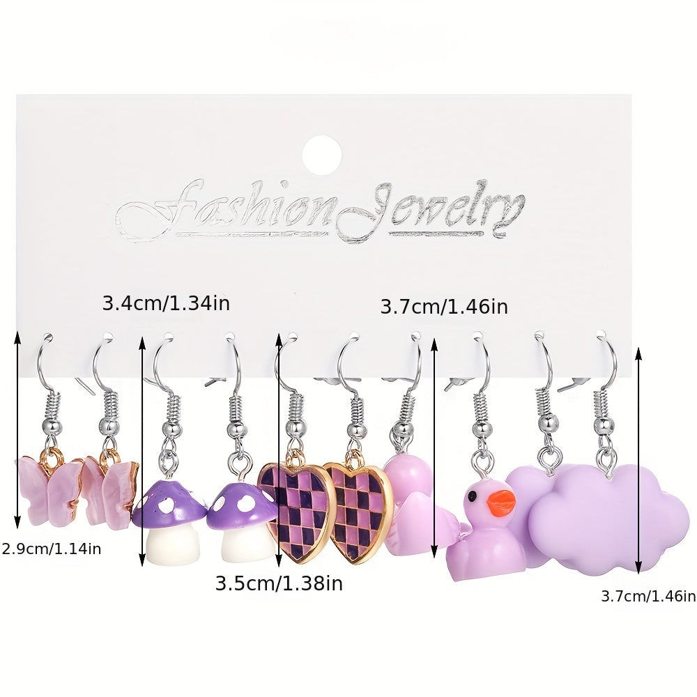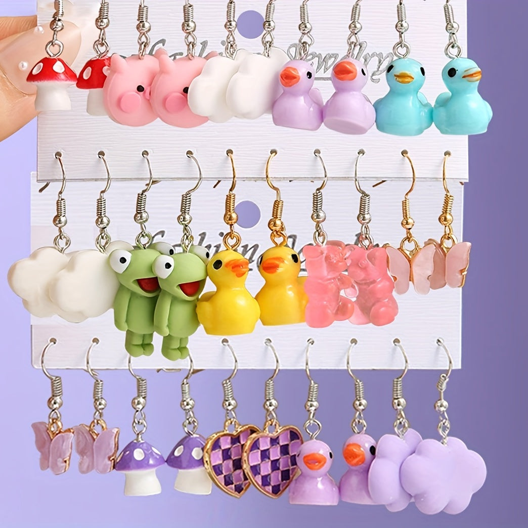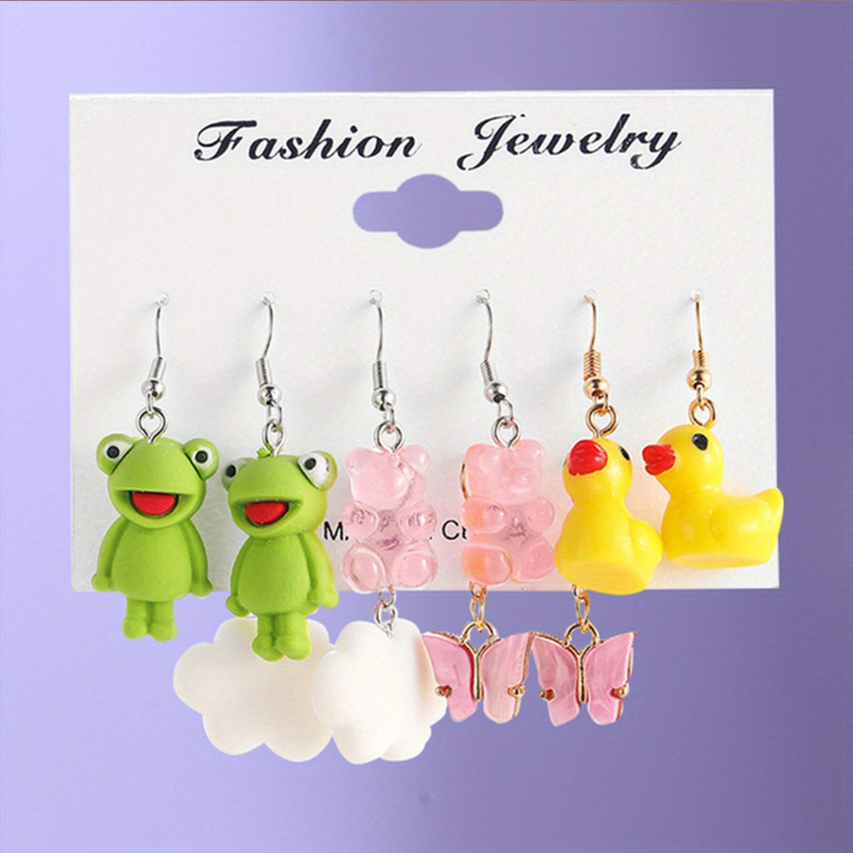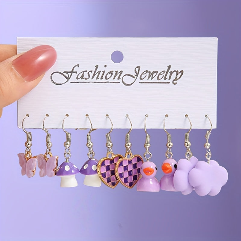 Add a touch of whimsy to your outfit with these adorable animal style earrings. Each set includes 5 pairs of earrings in the shape of butterflies, pigs, and ducks.