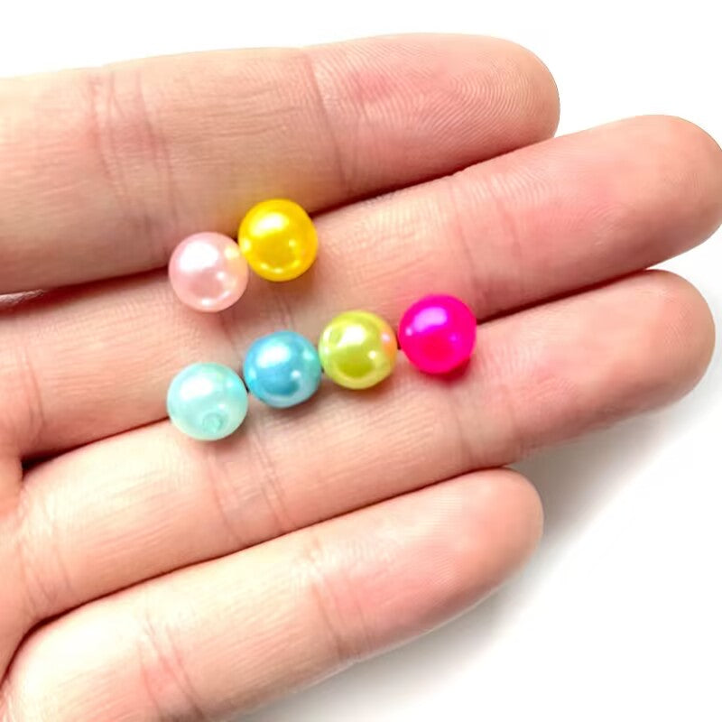 Get creative with these round ABS pearl beads perfect for DIY bracelet and necklace making. Available in sizes ranging from 4mm to 10mm, these beads are versatile and easy to use.